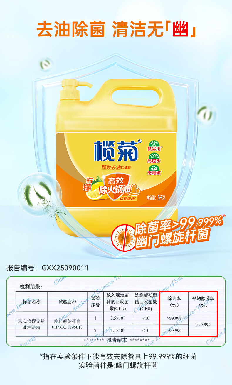 • 商品名称:榄菊洗洁精大桶5kg 菊之语柠檬去油果蔬清洗剂餐具食品用级别洗涤灵 洗洁精/瓶
