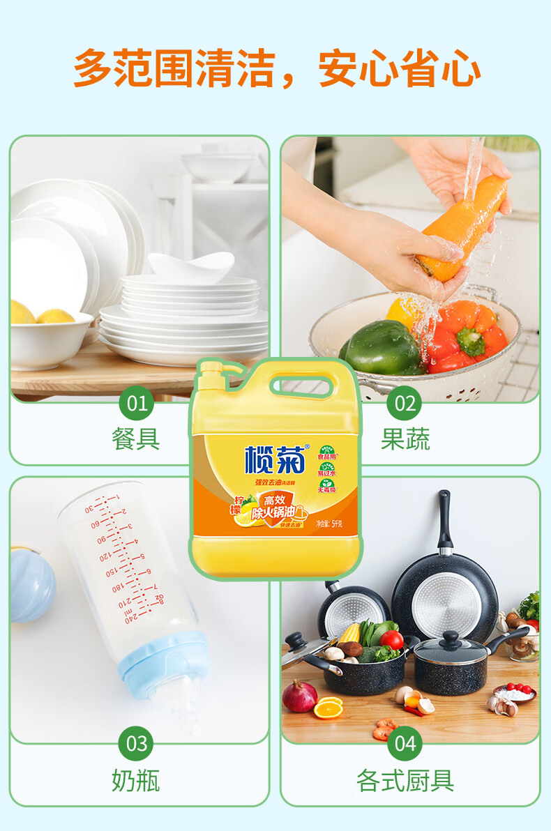 家庭清洁/纸品  > 家庭环境清洁  > 洗洁精  >  榄菊  >  榄菊洗洁精大桶5kg 菊之语柠檬去油果蔬清洗剂餐具食品用级别洗涤灵 洗洁精/瓶