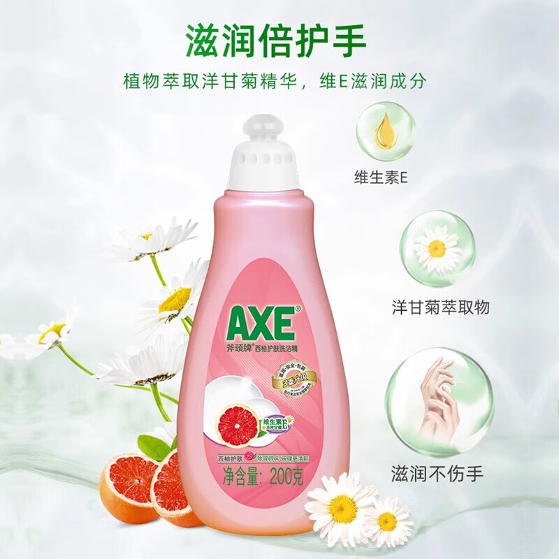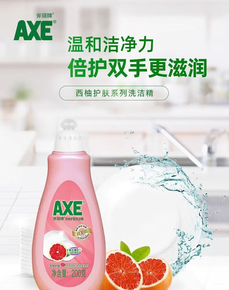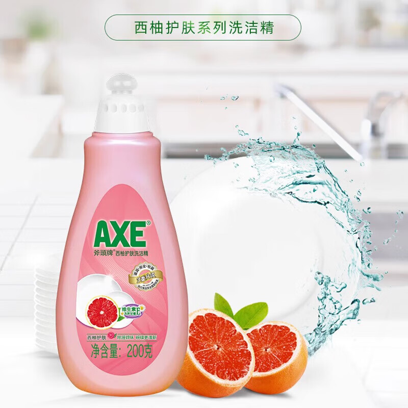 • 商品名称:斧头AXE洗洁精200g 西柚小瓶装去油可洗果蔬 西柚香洗洁精*1 AXE洗洁精西柚200g/瓶