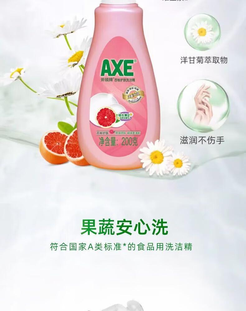 商品名称: 斧头AXE洗洁精200g 西柚小瓶装去油可洗果蔬 西柚香洗洁精*1 AXE洗洁精西柚200g/瓶