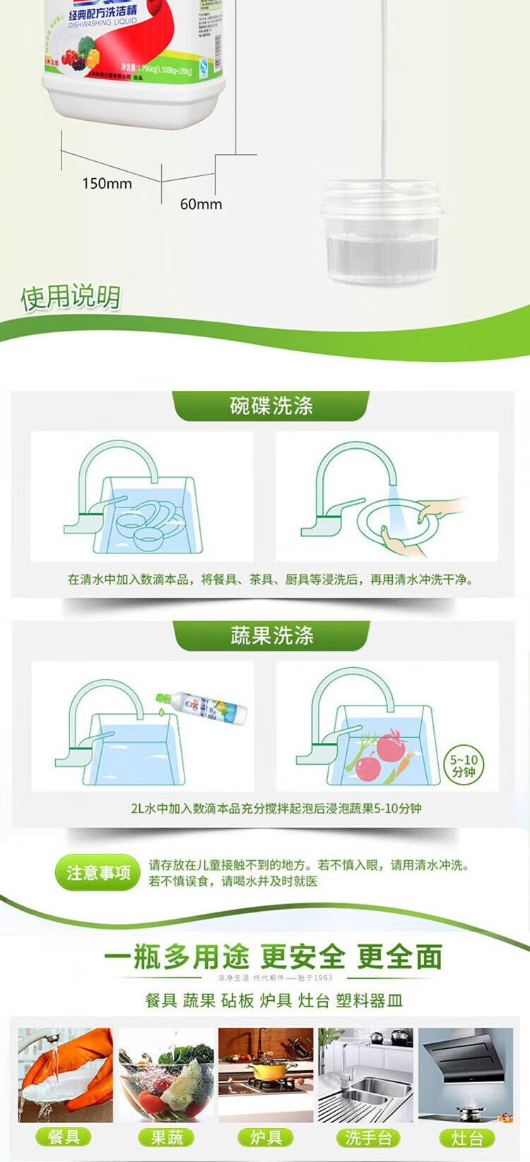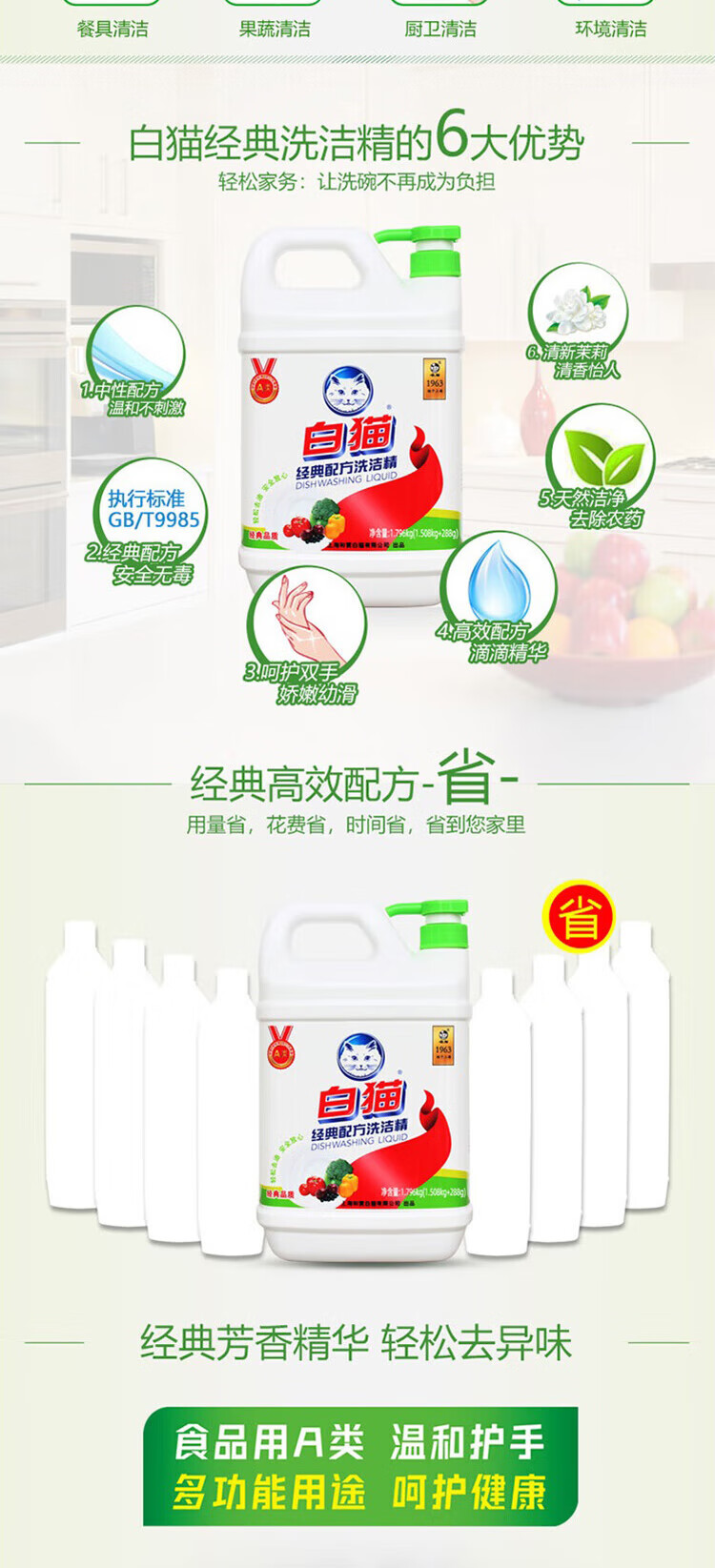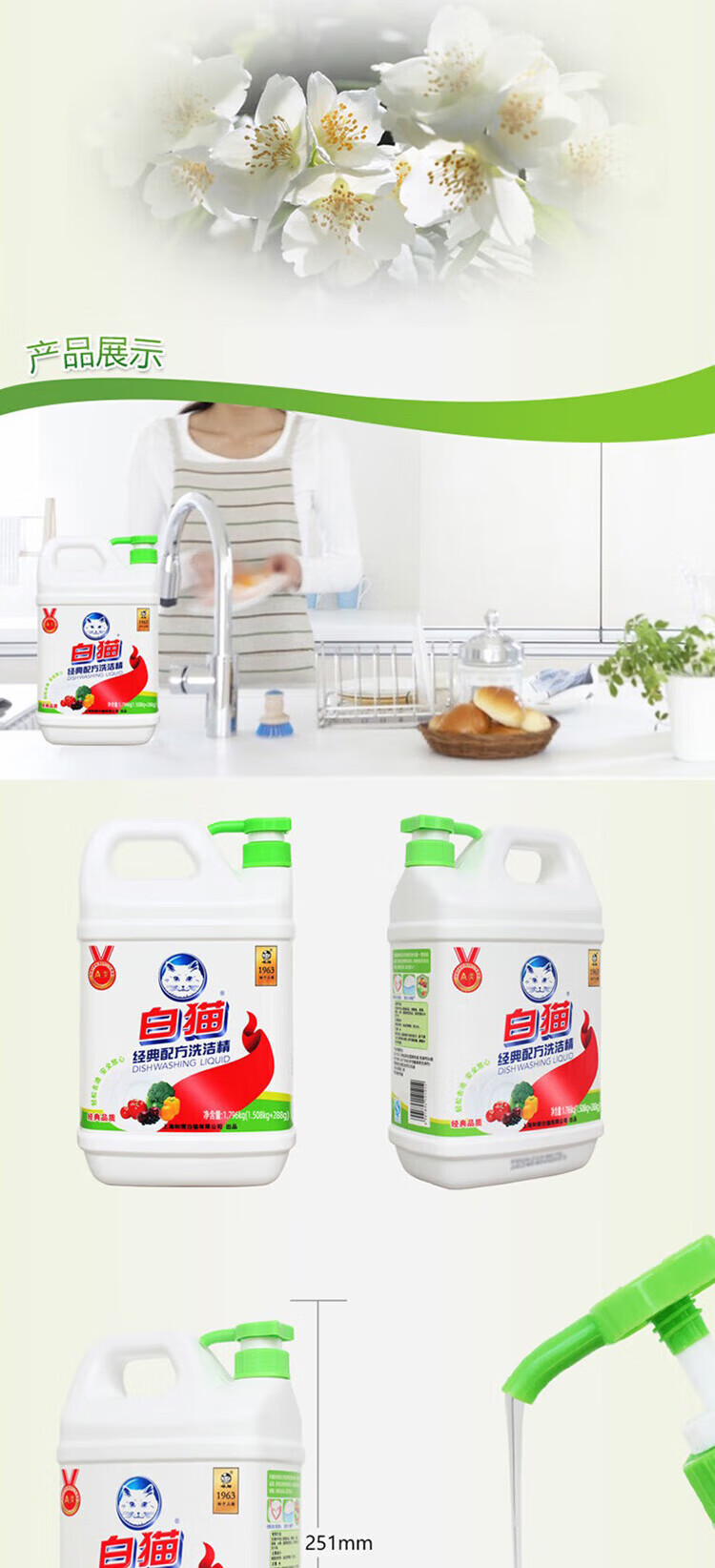 包装清单: 白猫经典洗洁精1.796kg(1.506千克+290克)
