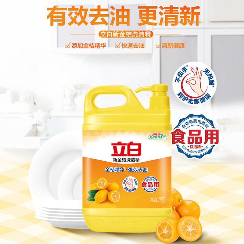 立白新金桔大桶洗洁精2kgA类食品用除味去油腥餐具洗碗液洗涤灵洗涤剂 洗洁精/瓶