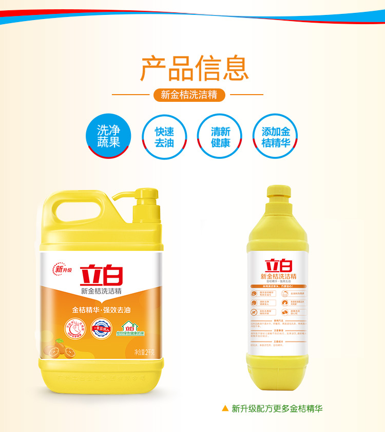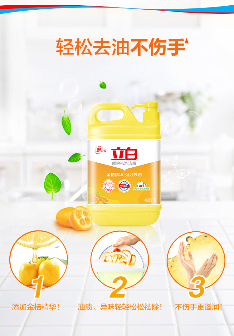 包装清单: 立白 新金桔洗洁精2kg 果蔬清洗餐洗净 洗涤精 快速去油 不伤手