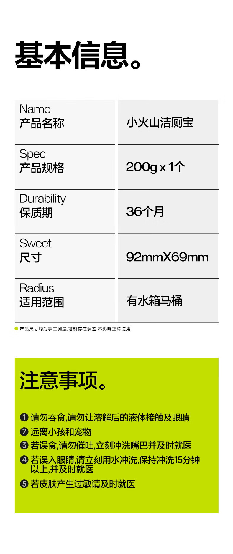 包装清单: 小火山洁厕宝洁厕灵块蓝泡泡马桶清洁剂厕所卫生间除垢去污抑菌200g/个*1