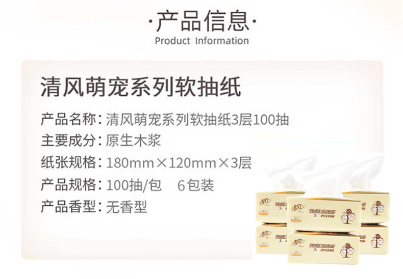 • 商品名称:清风萌宠系列亲肤抽纸6包*2提 6包*2提/包