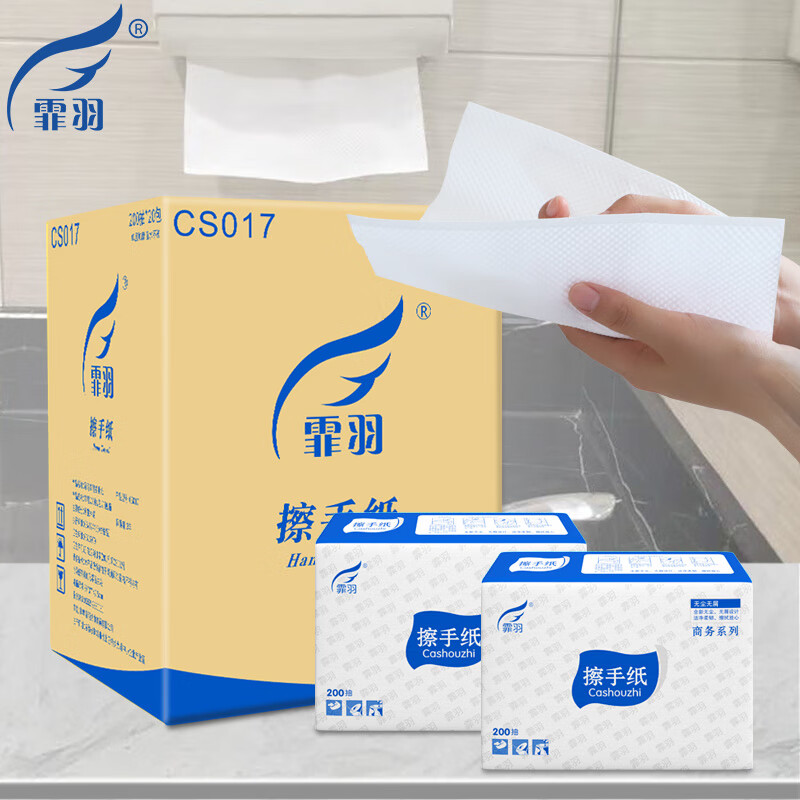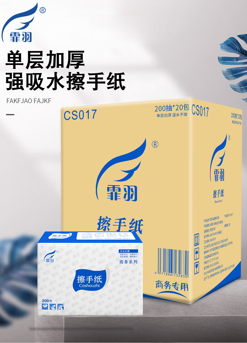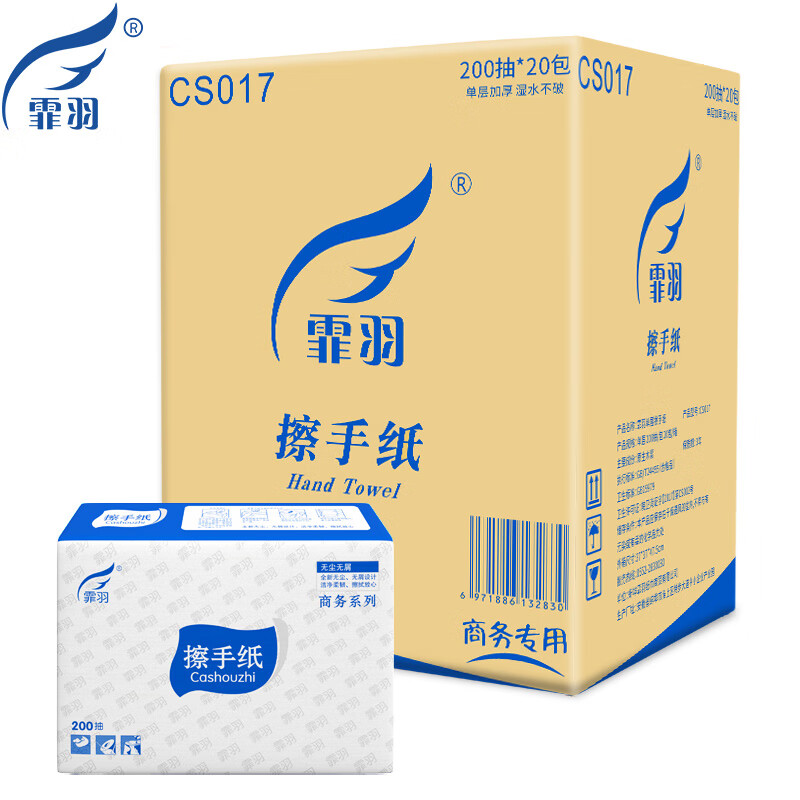 家庭清洁/纸品  > 清洁纸品  > 抽纸  >  霏羽  >  霏羽擦手纸加厚型加大单层200抽20包檫手纸CS017【企业专属】 抽纸/箱