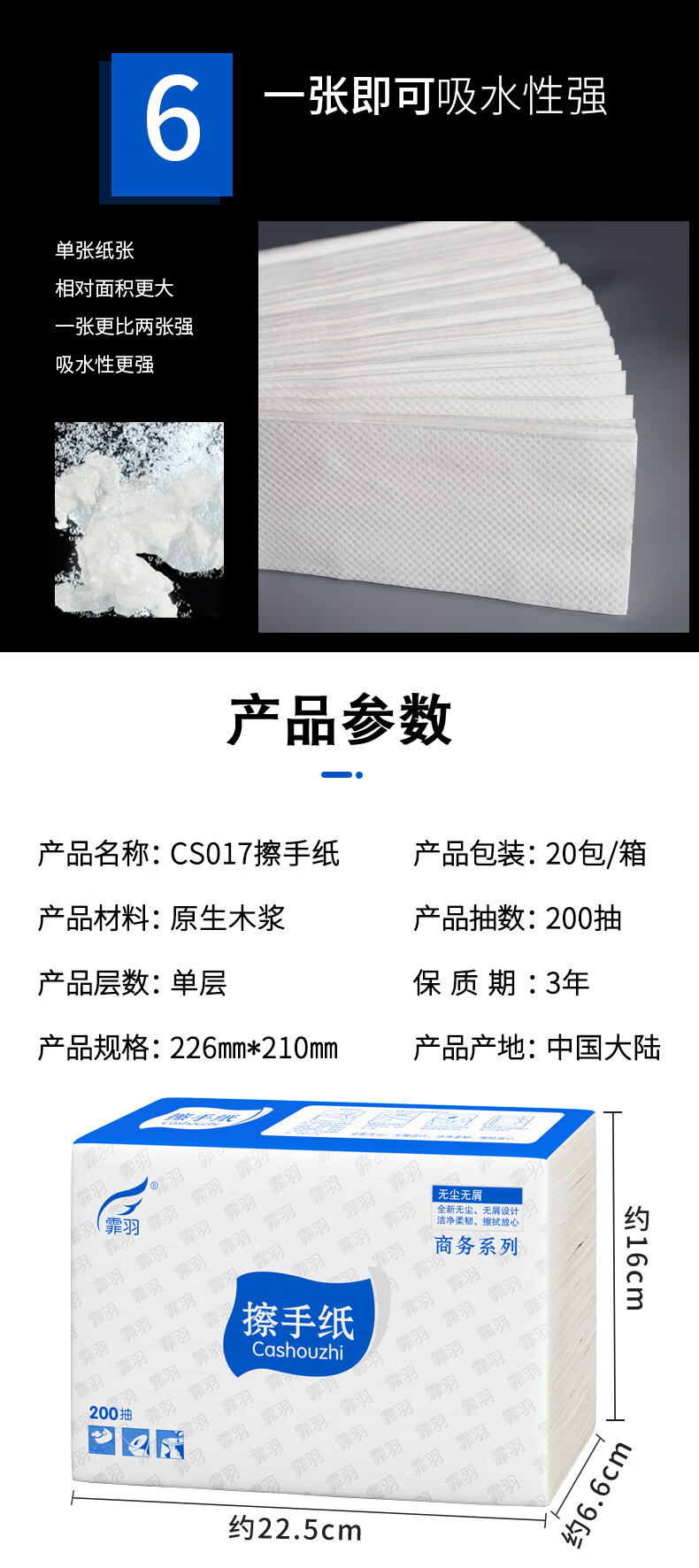 商品名称: 霏羽擦手纸加厚型加大单层200抽20包檫手纸CS017【企业专属】 抽纸/箱
