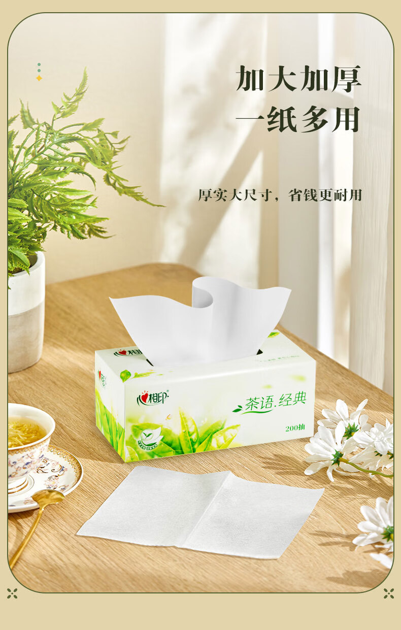 • 商品名称:心相印抽纸/盒抽 茶语经典2层200抽*3盒纸巾 商务 会议 办公面巾纸 H200 抽纸/提