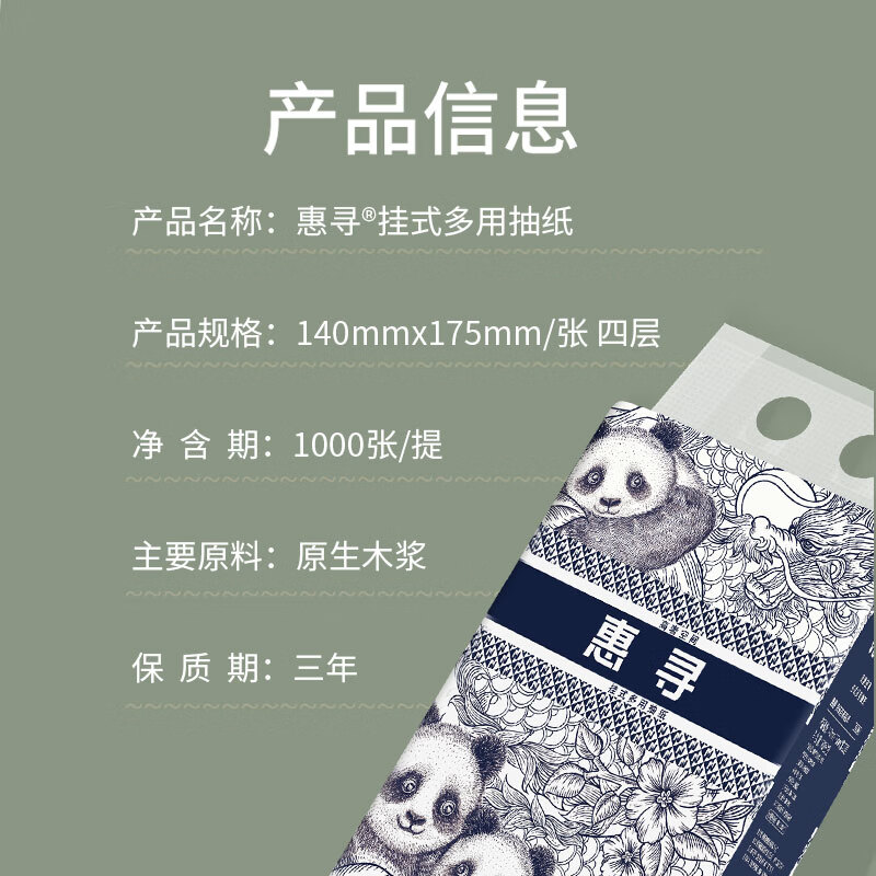 • 商品名称:惠寻底部抽3提*1000张 4层加厚挂壁式抽纸面巾纸擦手纸 hxpr1000/提