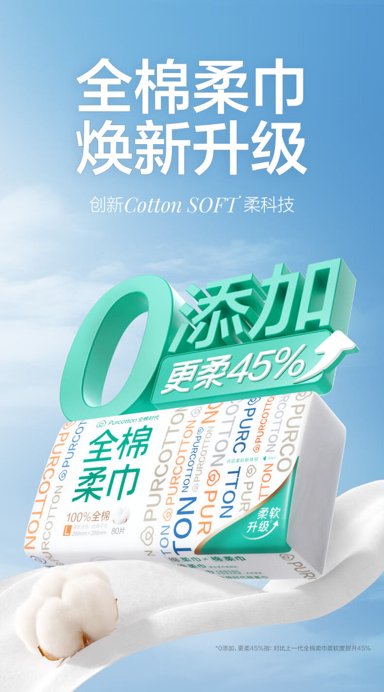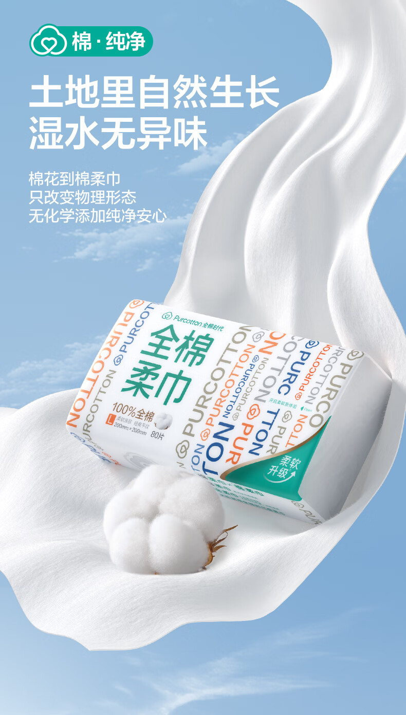 家庭清洁/纸品  > 清洁纸品  > 抽纸  >  全棉时代/PurCotton  >  全棉时代【孙颖莎同款】洗脸巾 80片*6包一次性100%棉柔巾毛巾擦脸20*20CM 纯棉柔巾/袋