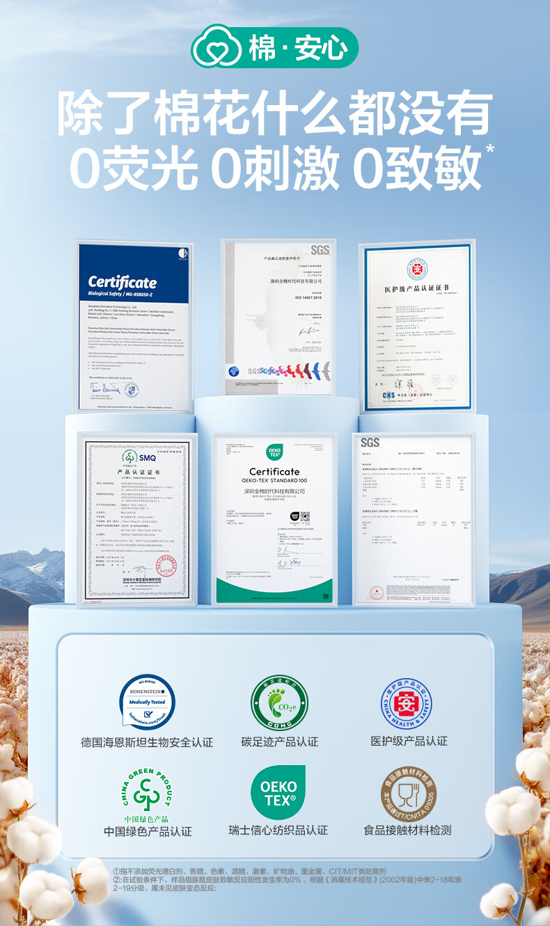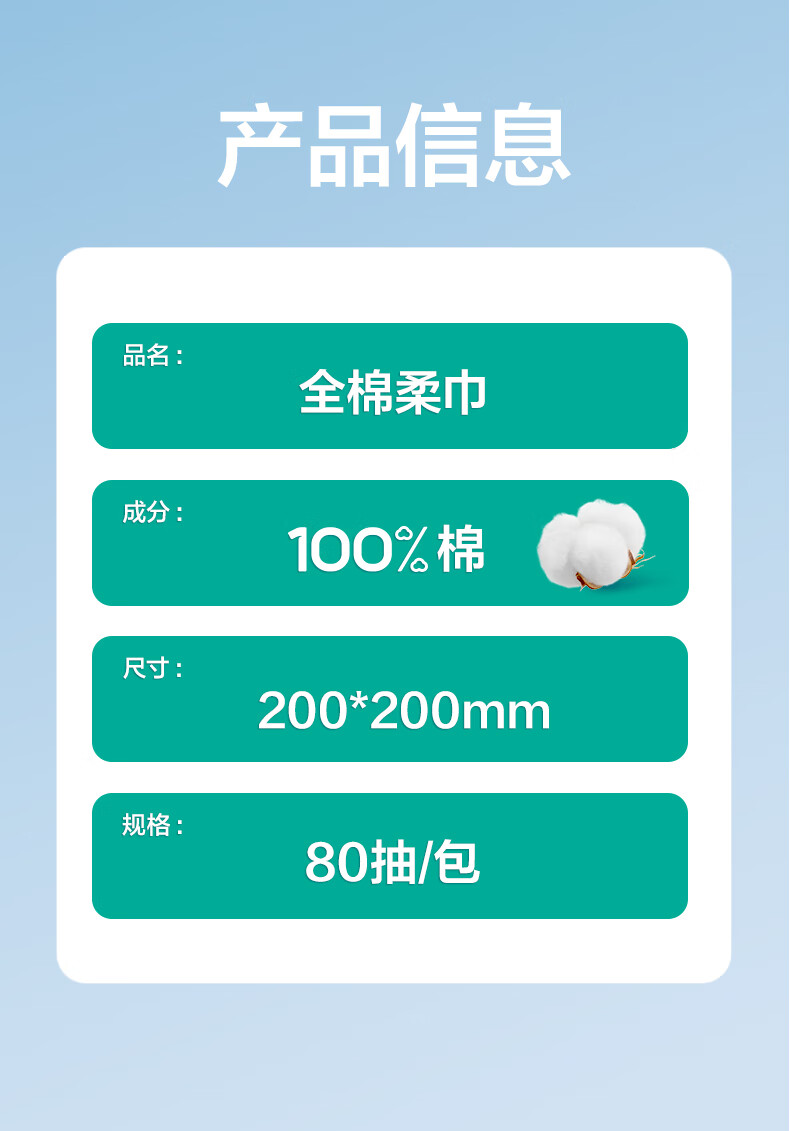 • 商品名称:全棉时代【孙颖莎同款】洗脸巾 80片*6包一次性100%棉柔巾毛巾擦脸20*20CM 纯棉柔巾/袋