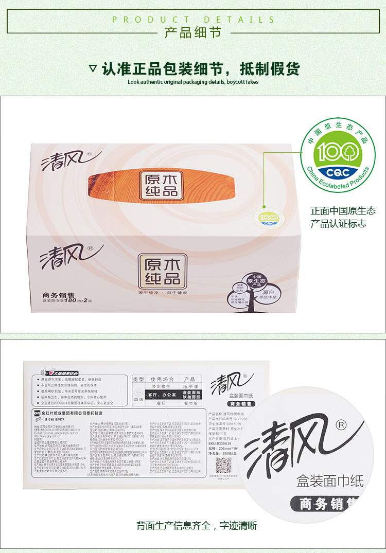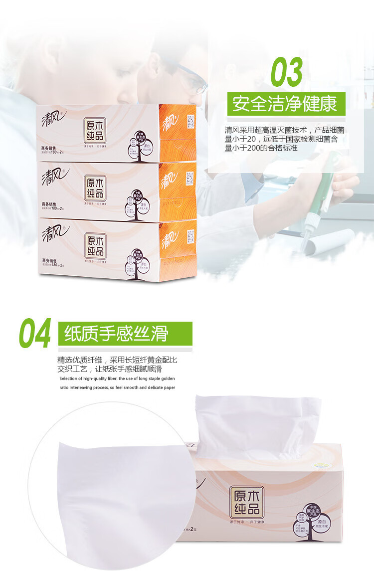 商品名称: 清风纸巾盒装36包双层180抽商用客房整箱抽纸批发B339A18(单位:箱) B339A18/箱