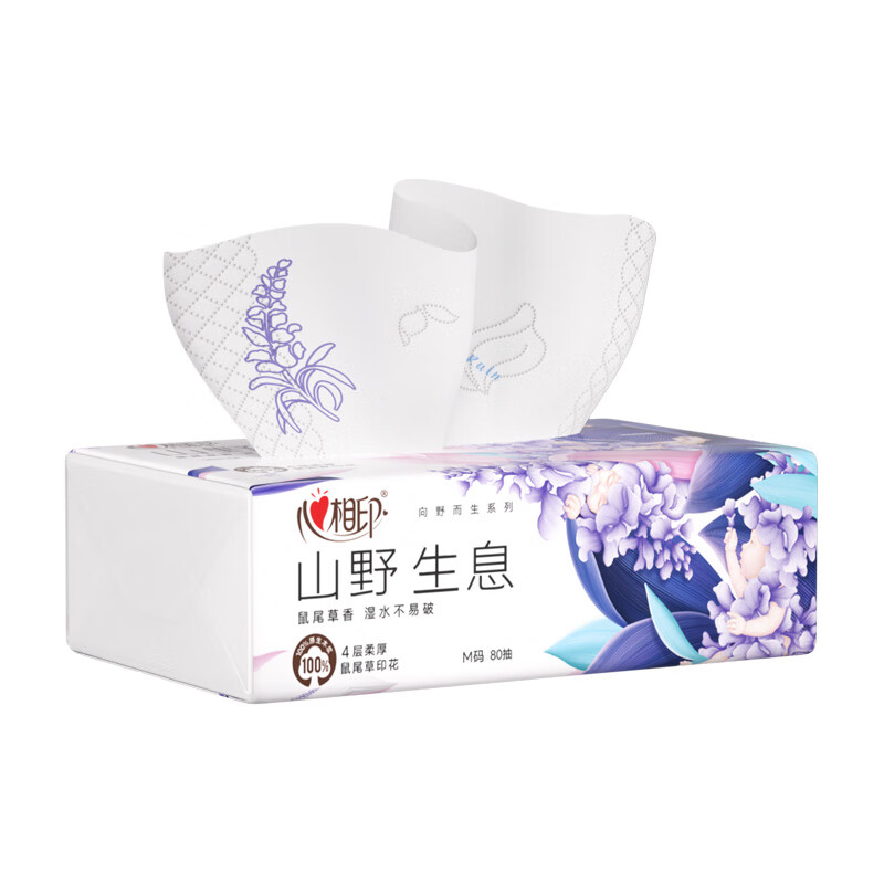 家庭清洁/纸品  > 清洁纸品  > 抽纸  >  心相印  >  心相印抽纸 向野而生4层80抽18包M码鼠尾草香氛 面巾纸箱装(包邮) DT42080/箱