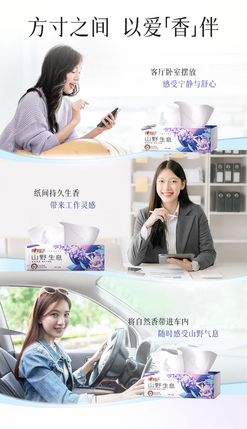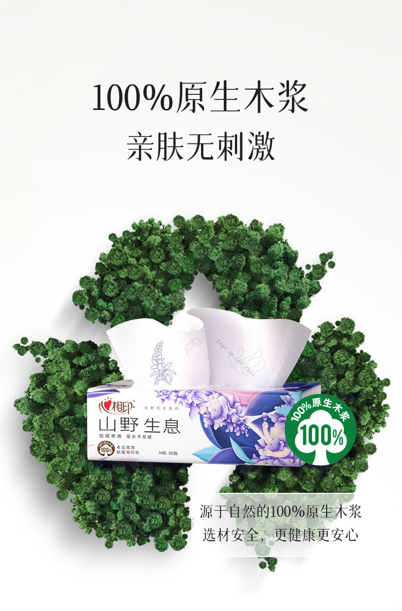 • 商品名称:心相印抽纸 向野而生4层80抽18包M码鼠尾草香氛 面巾纸箱装(包邮) DT42080/箱