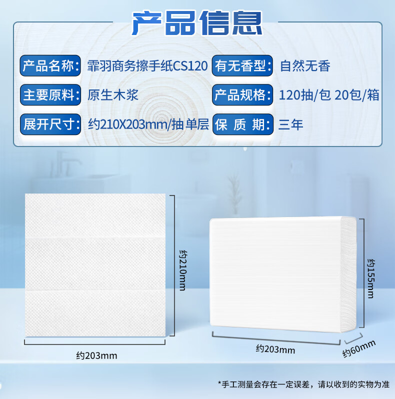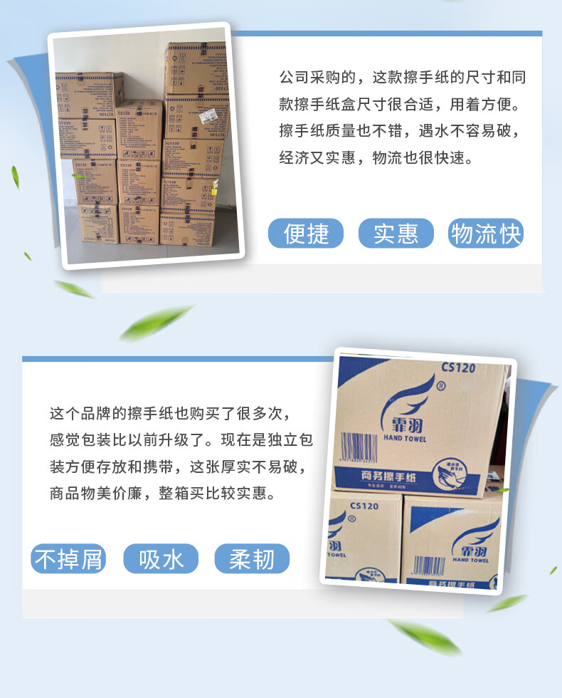 商品名称: 霏羽商用商务擦手纸 1层120抽*20包L码吸水吸油整箱干手抹手纸CS120 CS120/箱