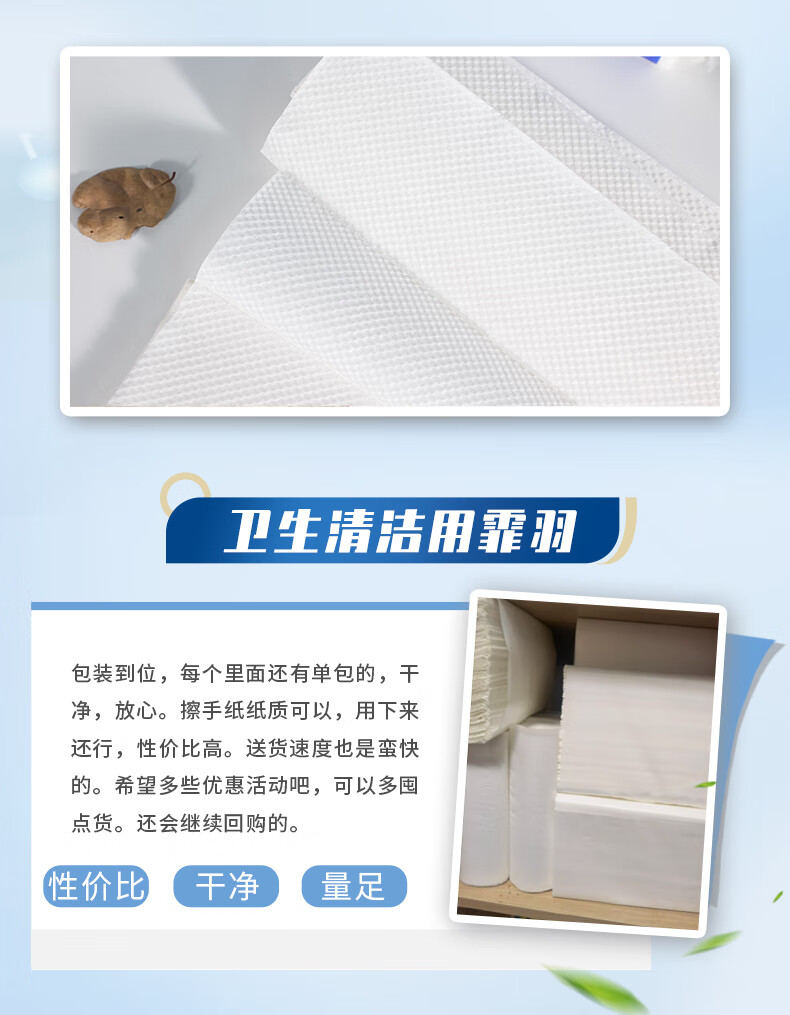 • 商品名称:霏羽商用商务擦手纸 1层120抽*20包L码吸水吸油整箱干手抹手纸CS120 CS120/箱
