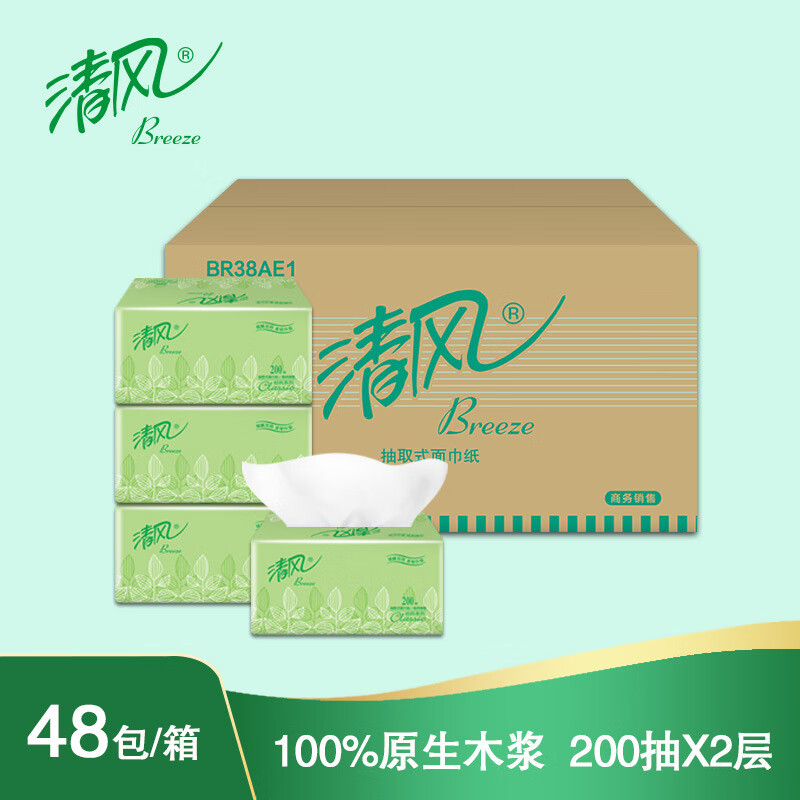 家庭清洁/纸品  > 清洁纸品  > 抽纸  >  清风  >  清风抽纸48包双层200抽 商用家用餐厅用纸整箱BR38AE1 BR38AE1/箱