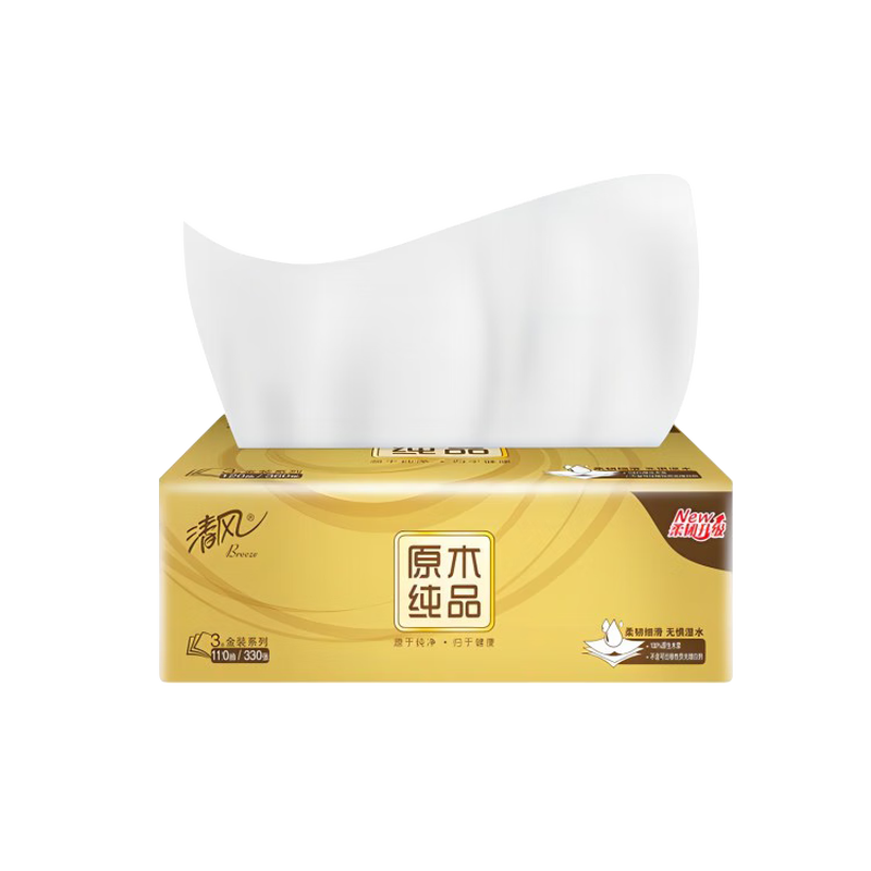 家庭清洁/纸品  > 清洁纸品  > 抽纸  >  清风  >  清风金装抽纸 3层 110抽一提四包4提装 AR41SWQ AR41SWQ/提