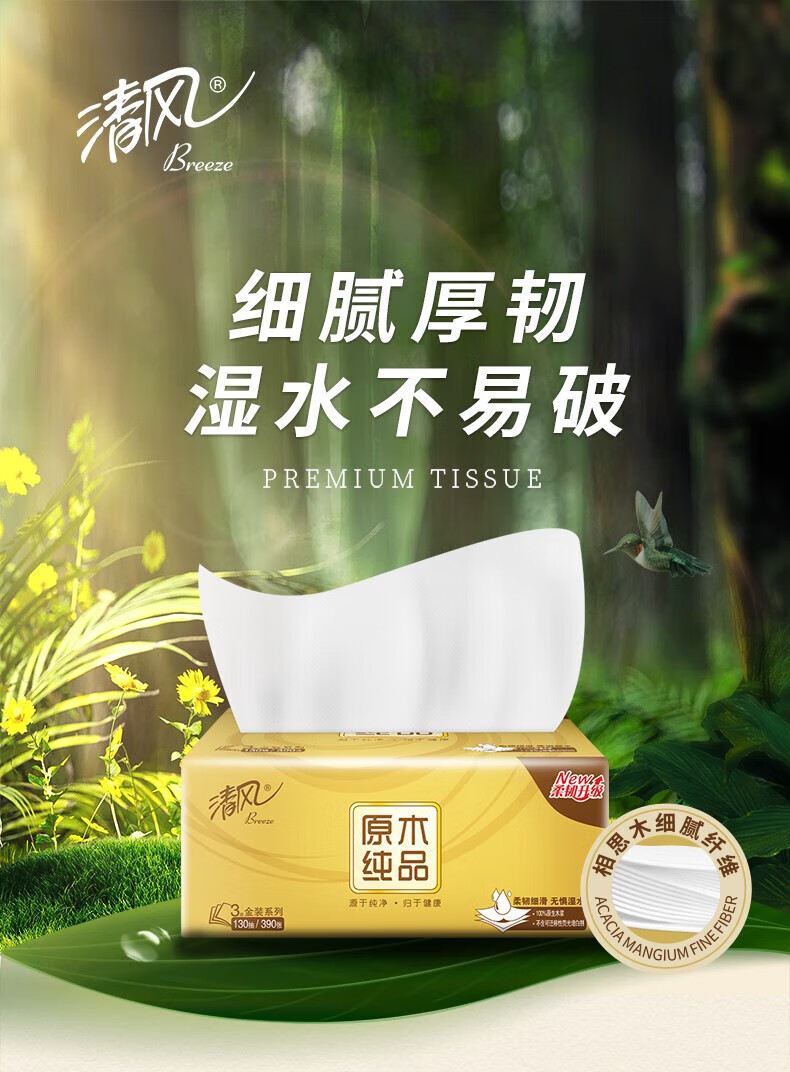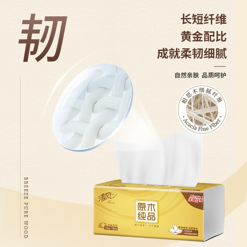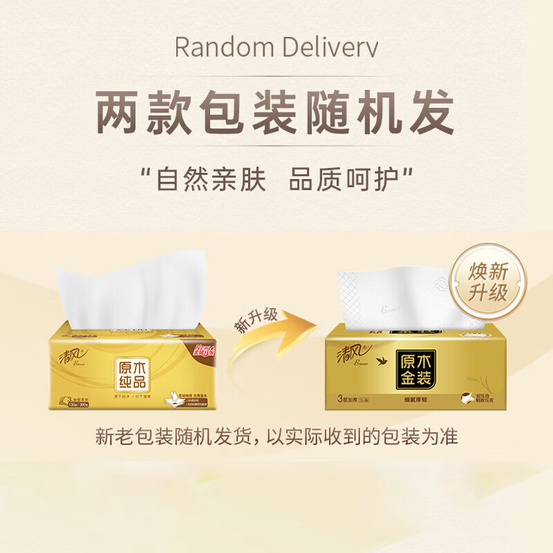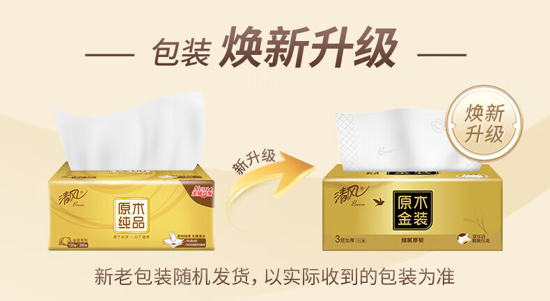 • 商品名称:清风 原木金装3层130抽16包S码纸巾面巾纸餐巾纸抽纸擦手纸整箱装 原木金装3层130抽16包_S/箱