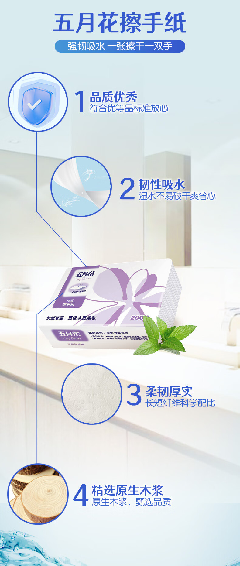 包装清单: 五月花(May Flower) 商用擦手纸 2层200抽*20包/箱 花瓣压花