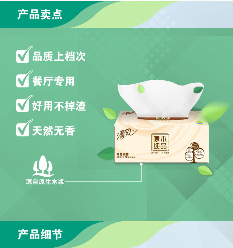 • 商品名称:清风抽纸 擦手纸2层180抽*36盒L码 盒抽 餐巾纸 酒店商务商用 整箱 B339A18/箱