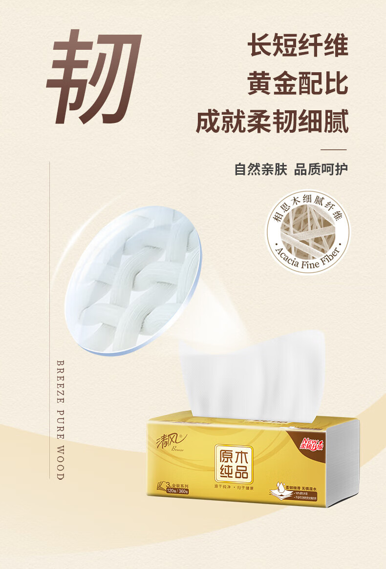 • 商品名称:清风抽纸3层金装120抽原木纯品软抽卫生纸巾面巾纸餐巾纸巾6提60包 BRA4SJE5/包