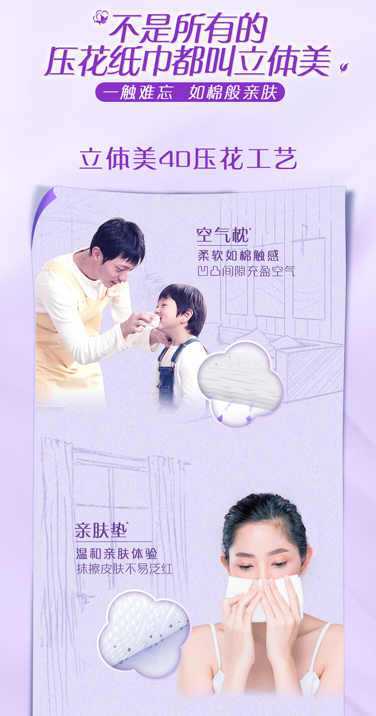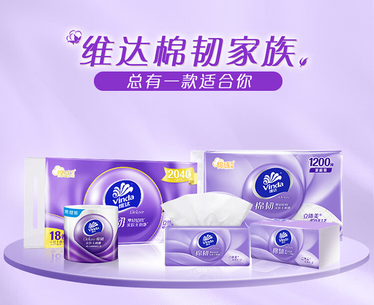 • 商品名称:维达(Vinda)抽纸【孙颖莎推荐】棉韧3层100抽*36包S码 亲肤无刺激纸巾 AB混发 V2833-D/箱