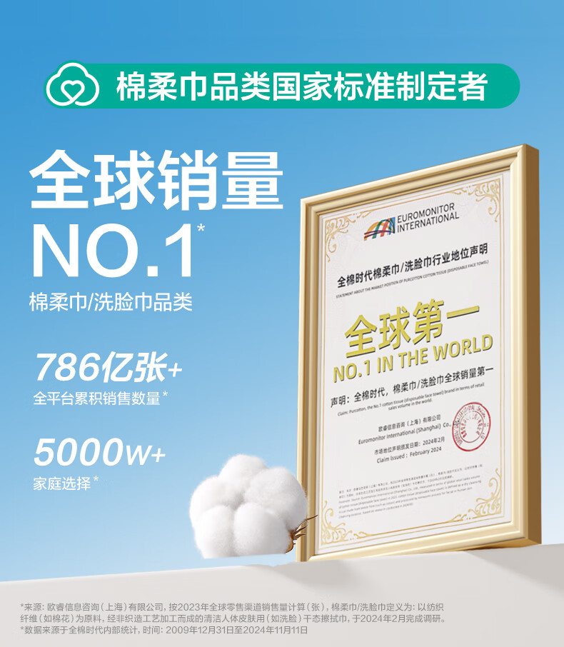 • 商品名称:全棉时代【孙颖莎同款】洗脸巾 80抽*6盒100%棉柔巾毛巾一次性便携20*20CM 棉柔巾/盒