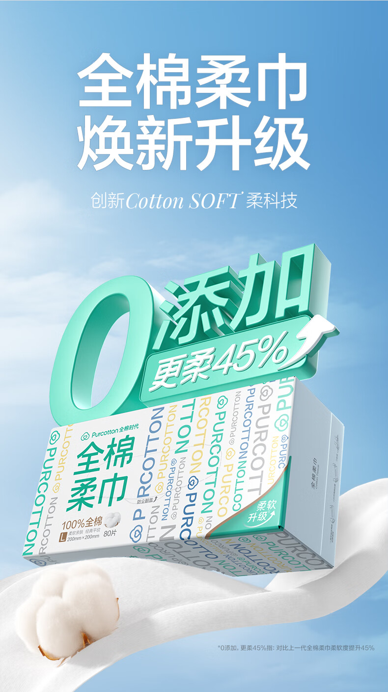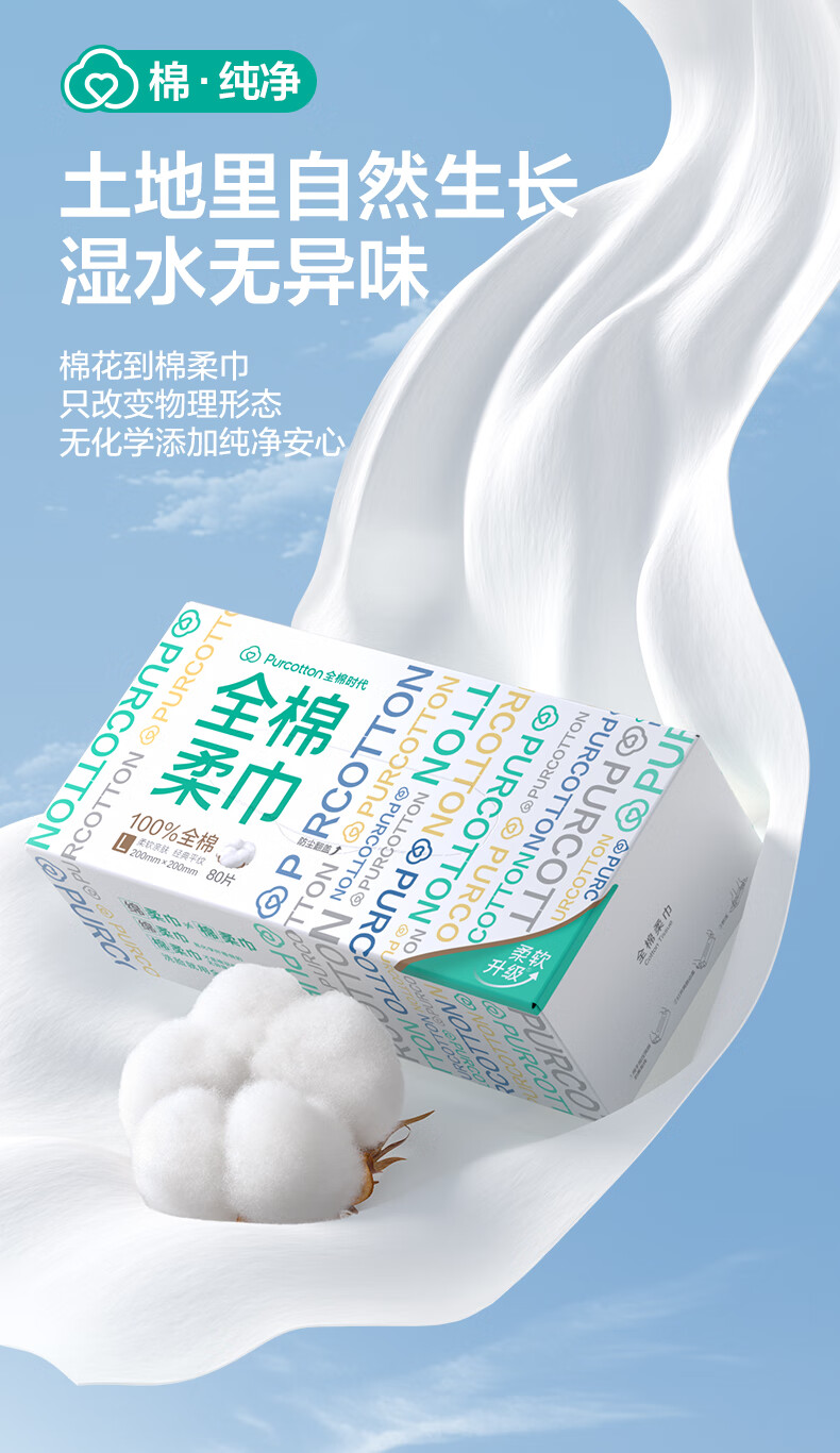 家庭清洁/纸品  > 清洁纸品  > 抽纸  >  全棉时代/PurCotton  >  全棉时代【孙颖莎同款】洗脸巾 80抽*6盒100%棉柔巾毛巾一次性便携20*20CM 棉柔巾/盒