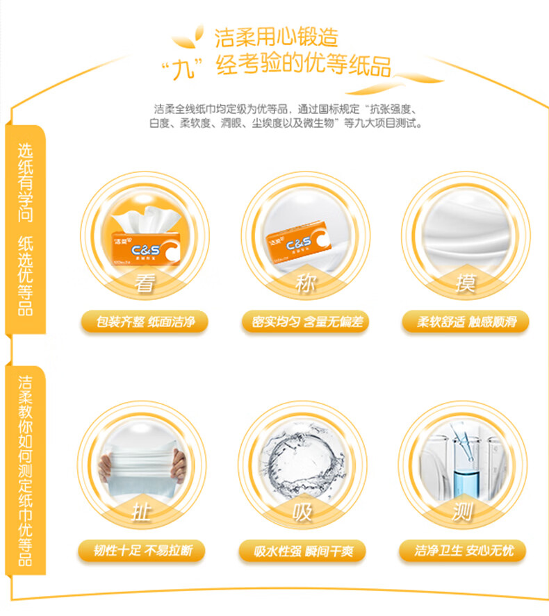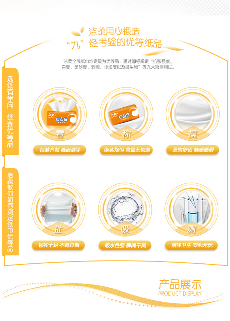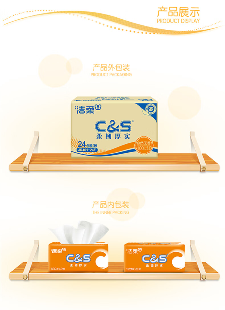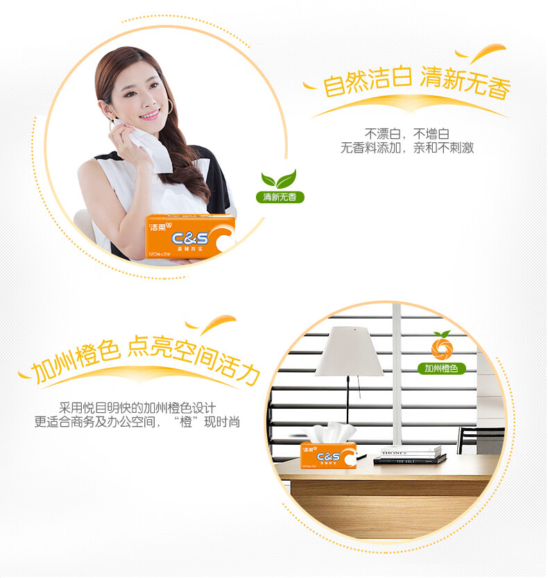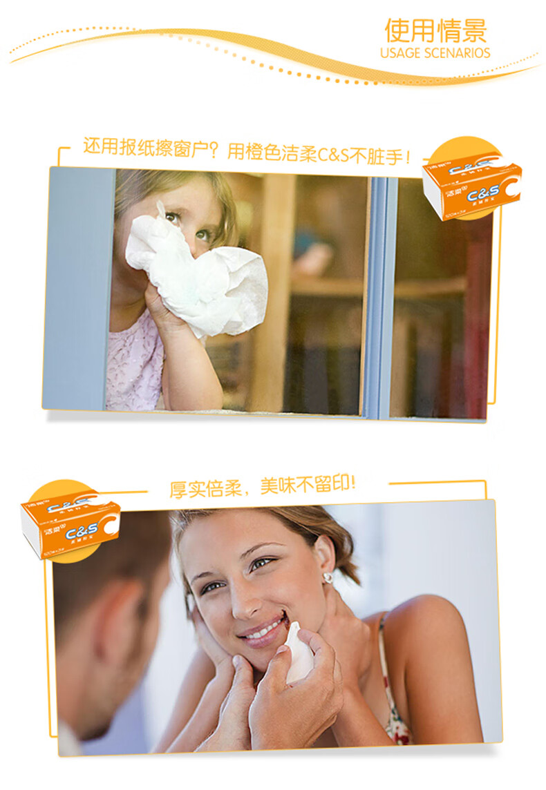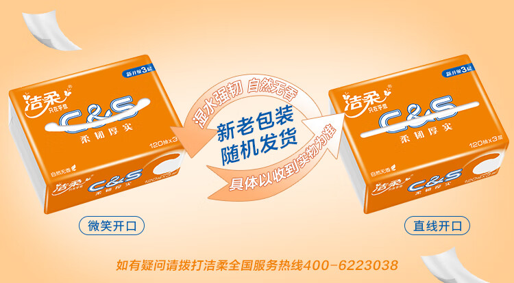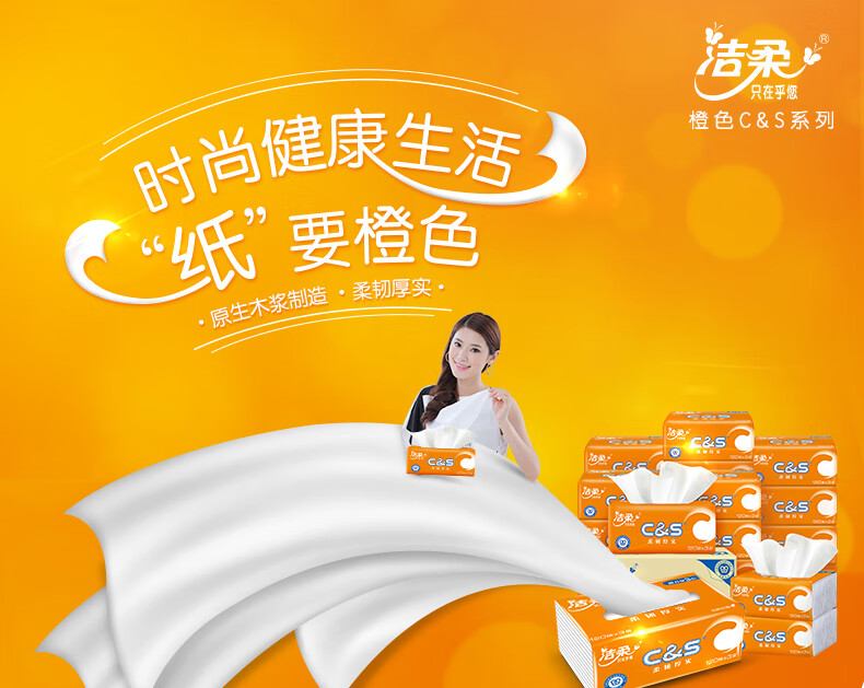 包装清单: 洁柔抽纸 活力阳光橙3层120抽*24包 母婴可用 全家适用 面巾纸 整箱(新老品交替发货)