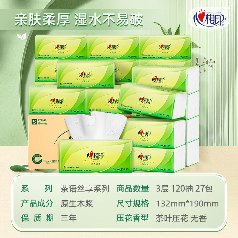 家庭清洁/纸品  > 清洁纸品  > 抽纸  >  心相印  >  心相印 茶语抽纸纸巾120抽20包装 DT15120(箱装) DT15120/包