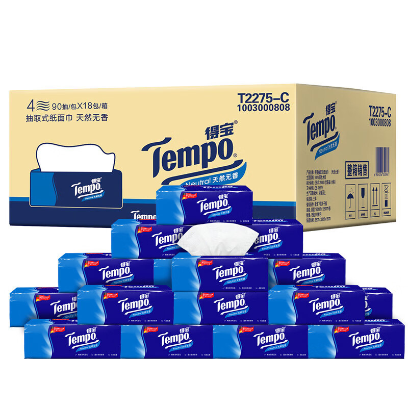 商品名称: 维达(Vinda)德宝 T2275-C无香4层90抽*18包抽纸1箱 T2275-C/箱