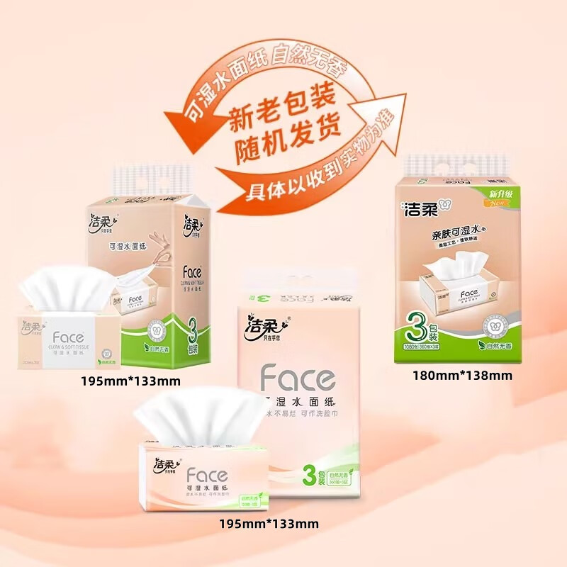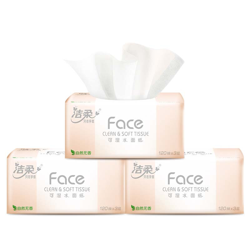 包装清单: 洁柔(C&S) 粉Face 3层120抽面巾纸*3包 抽纸 (计价单位:提)