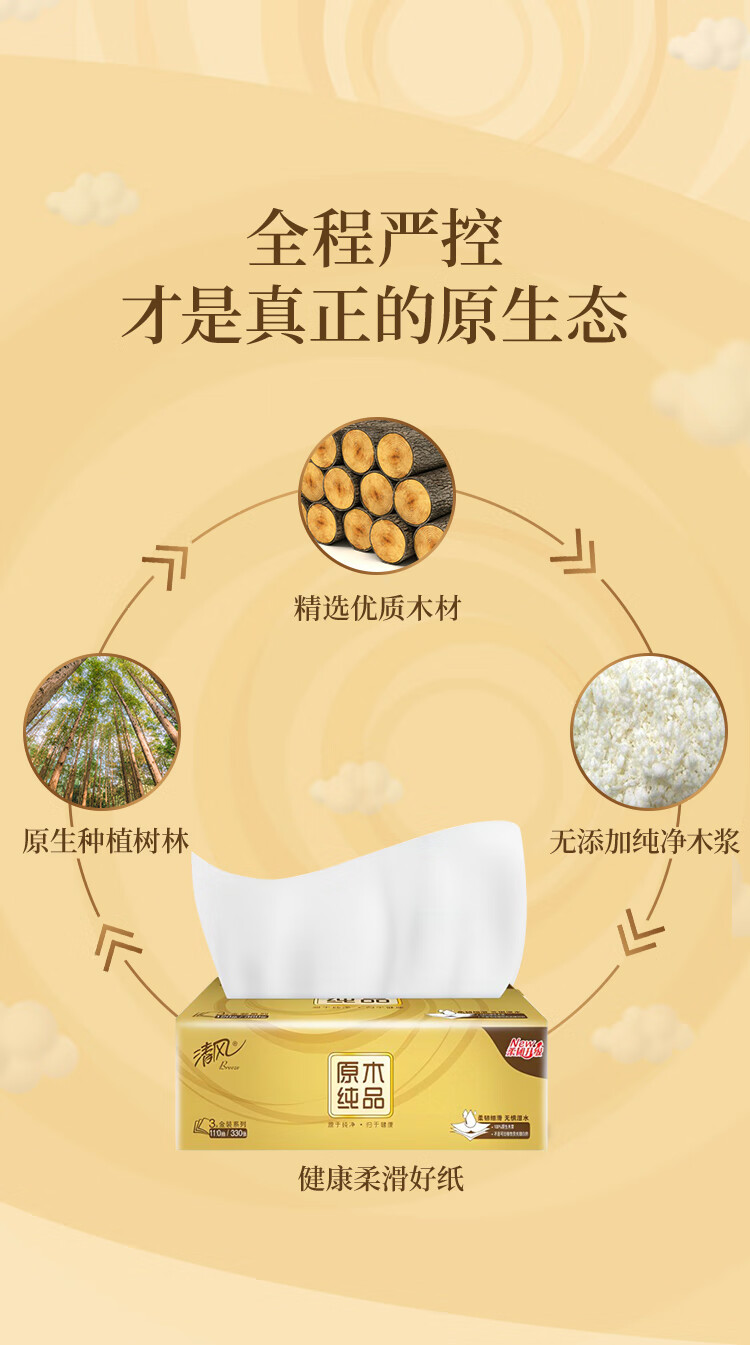 • 商品名称:清风清风原木金装3层110抽/包*4抽取式面巾纸 AR41SWQ 单提装 AR41SWQ /提