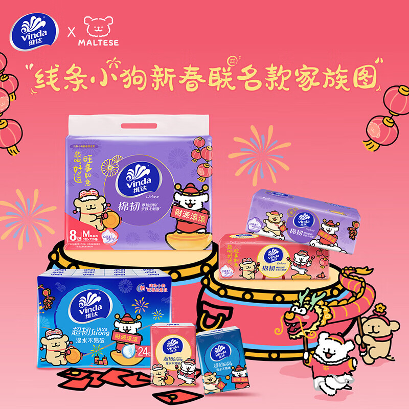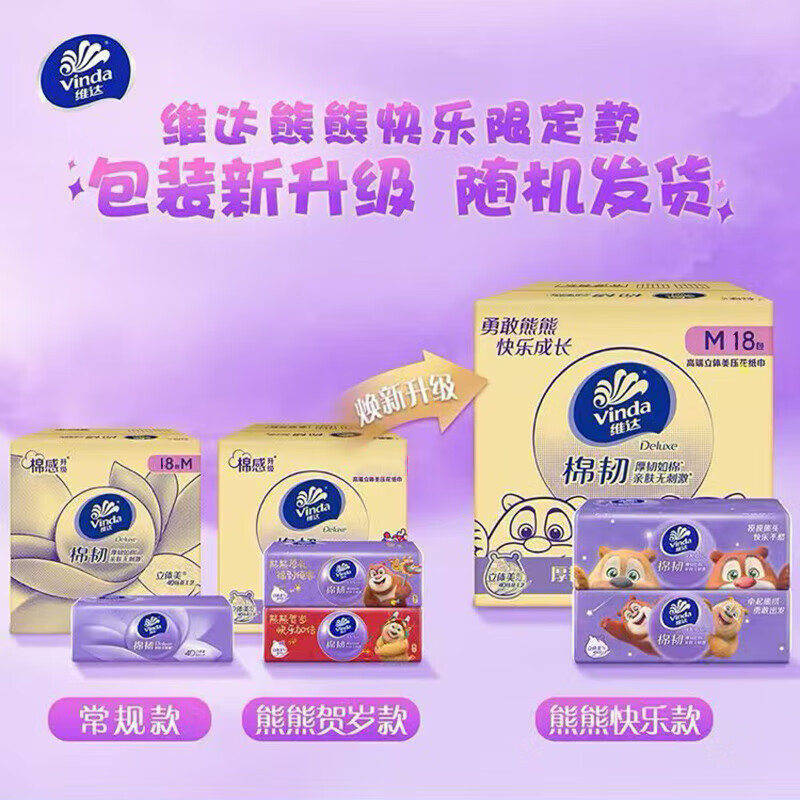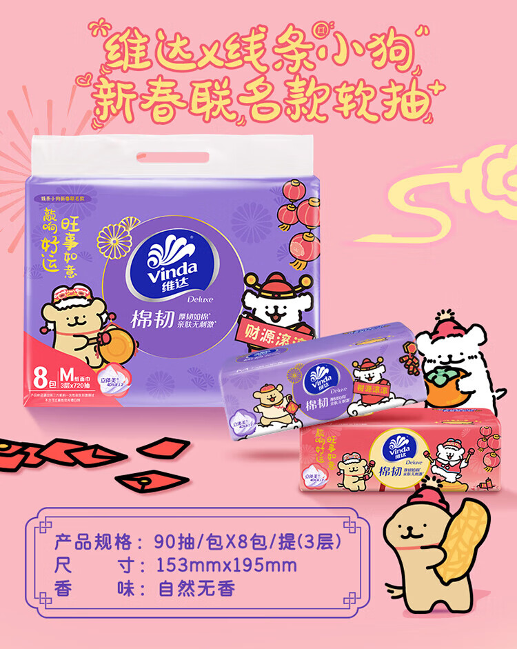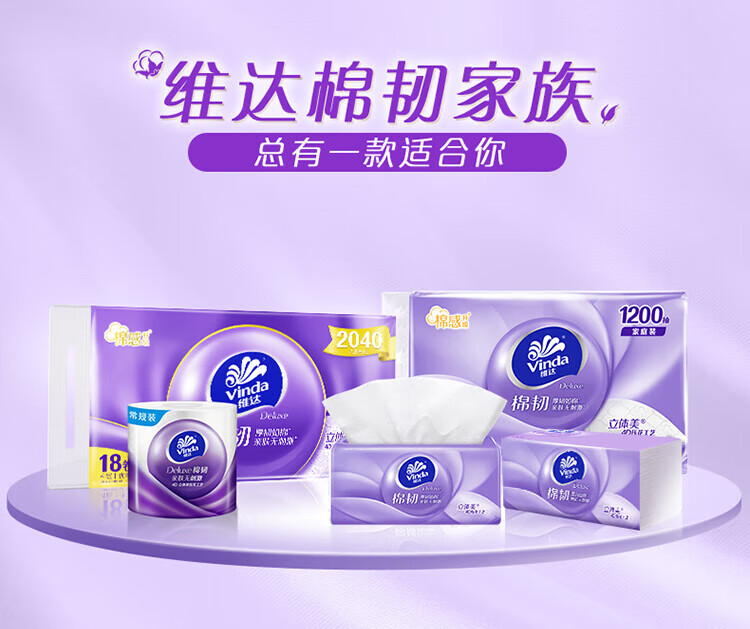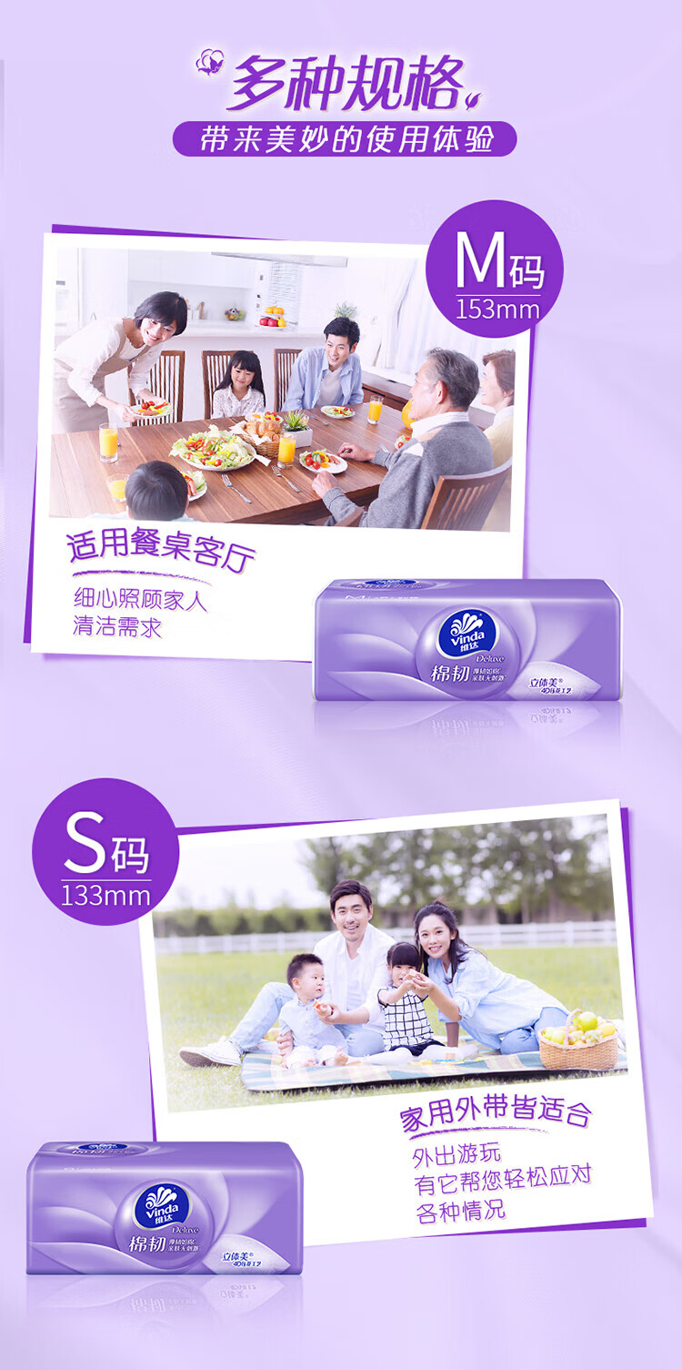 包装清单: V2834B 维达90抽3层棉韧抽取式纸面巾8包/提 1提装