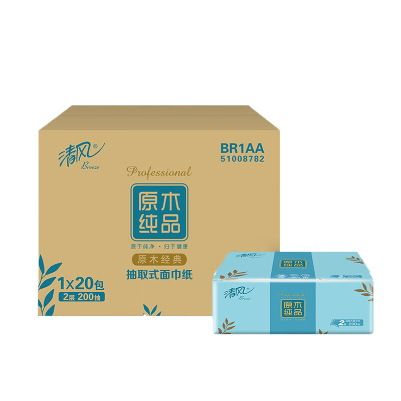家庭清洁/纸品  > 清洁纸品  > 抽纸  >  清风  >  清风纸巾抽纸2层200抽/包*20包整箱抽取式面巾纸BR1AA BR1AA/箱