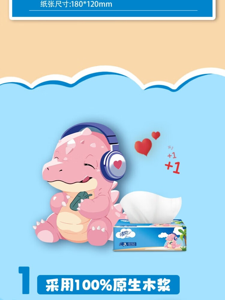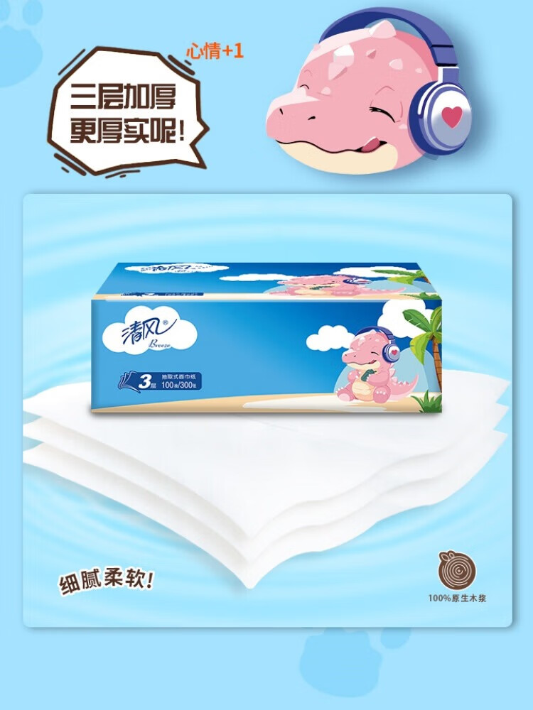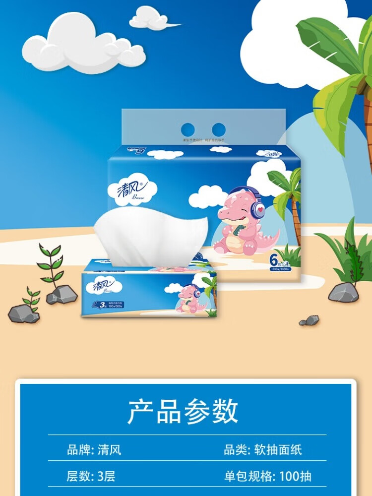 家庭清洁/纸品  > 清洁纸品  > 抽纸  >  清风  >  清风纸巾卡通系列抽纸3层100抽抽取式面巾纸6包/提*4提 卡通系列抽纸3层100抽 6包/提*4提/箱