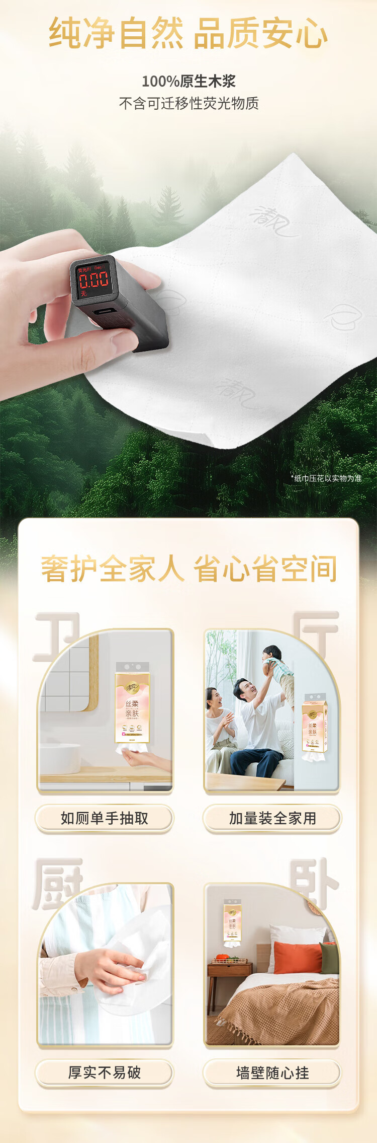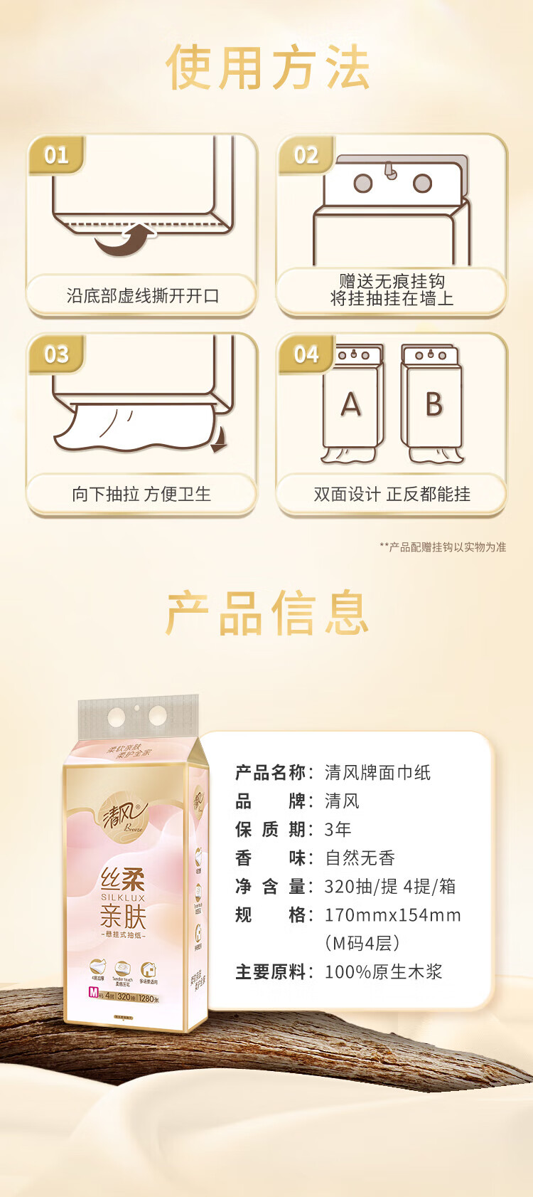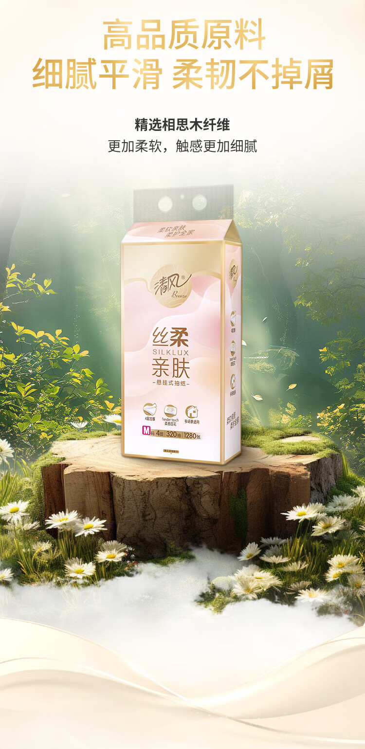 包装清单: 清风丝柔系列4层320抽/包*1挂式抽纸BG32MSBC