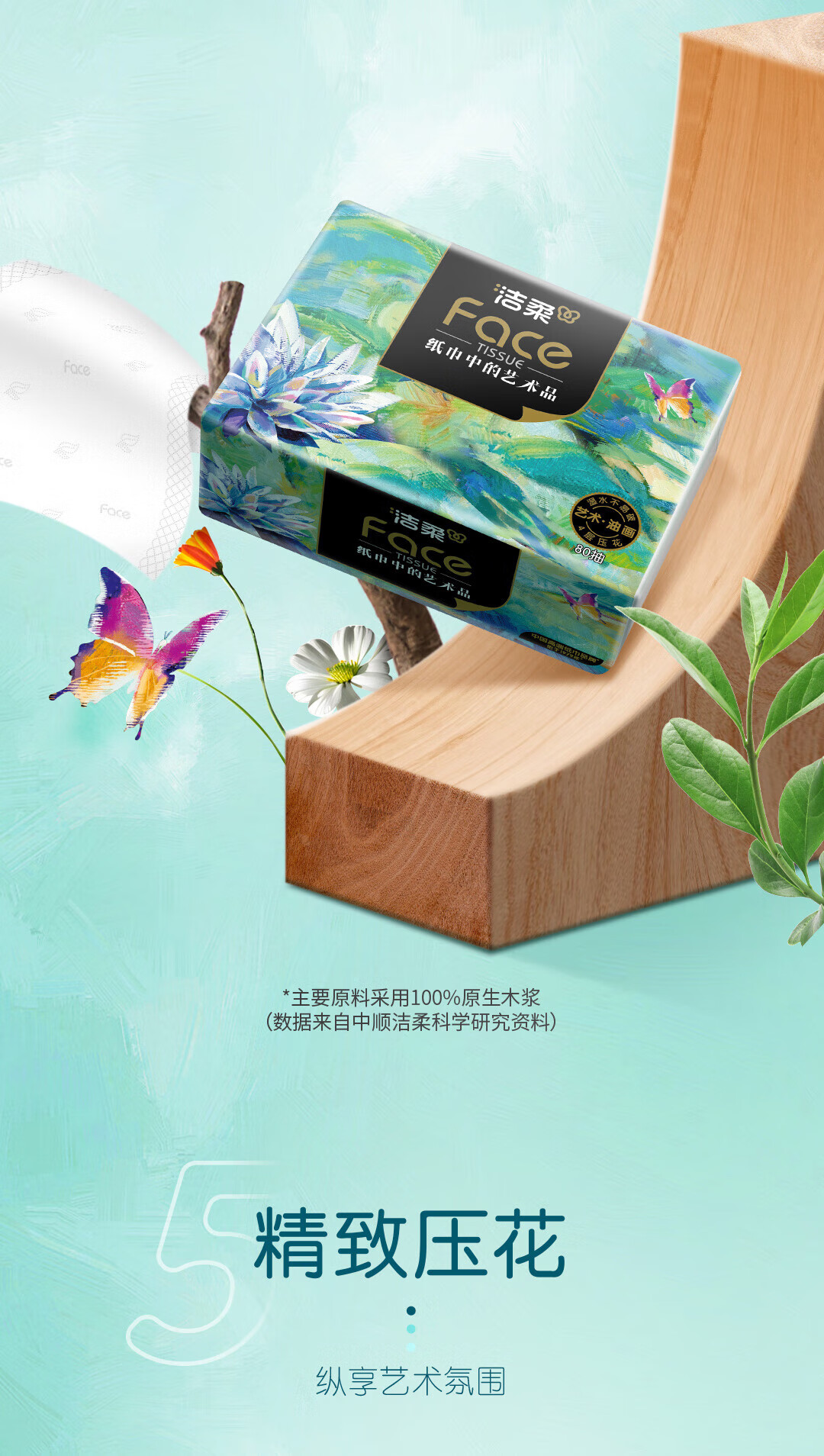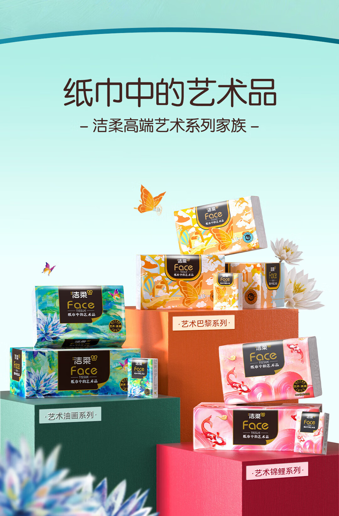 家庭清洁/纸品  > 清洁纸品  > 抽纸  >  洁柔  >  洁柔艺术油画4层80抽4包装BR128-24E BR128-24E/提