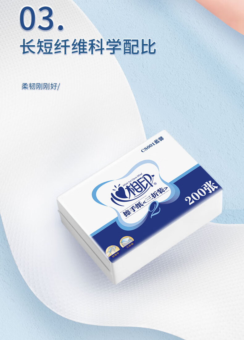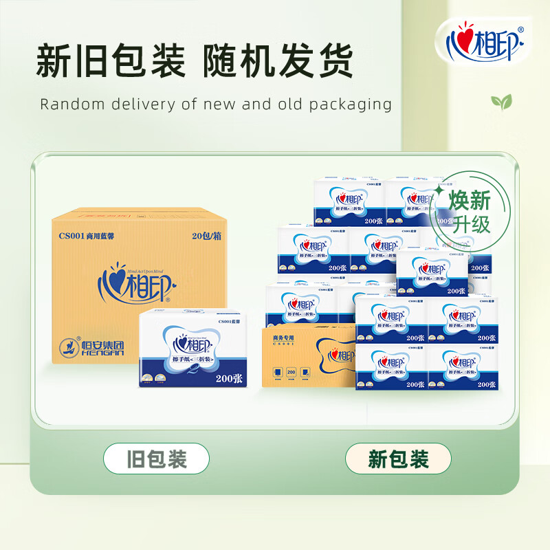 商品名称: 心相印(Mind Act Upon Mind)擦手纸 CS001商用蓝馨系列1层200抽*20包 写字楼办公酒店专用纸 CS001蓝馨/箱