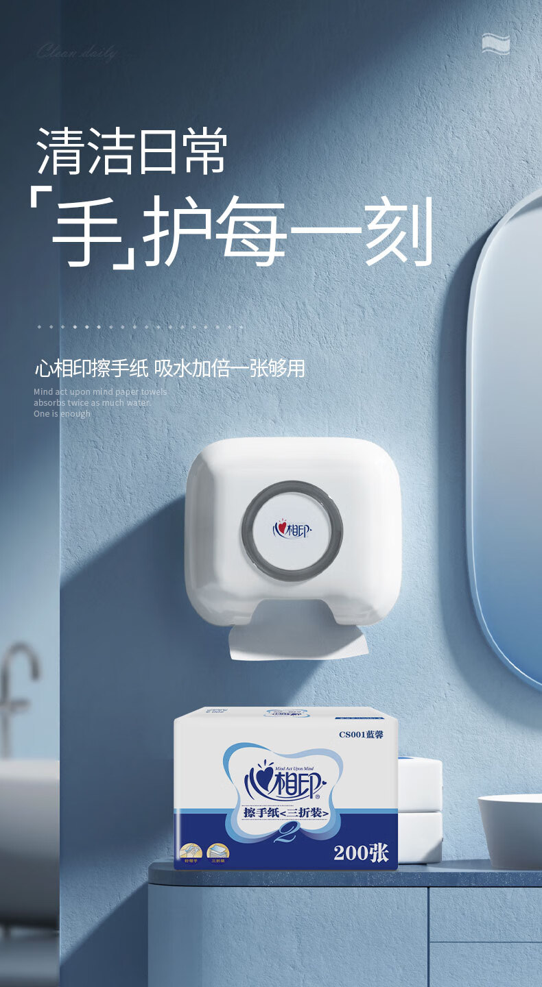 家庭清洁/纸品  > 清洁纸品  > 抽纸  >  心相印  >  心相印(Mind Act Upon Mind)擦手纸 CS001商用蓝馨系列1层200抽*20包 写字楼办公酒店专用纸 CS001蓝馨/箱