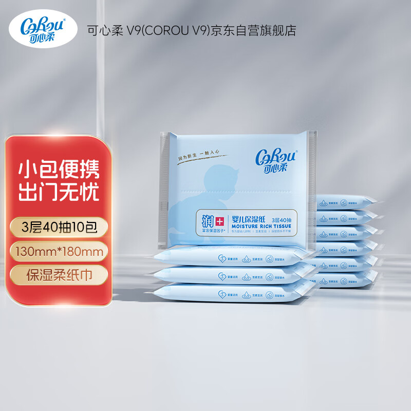 可心柔 (V9 COROU)抽纸 保湿纸巾 云柔巾 3层40抽*10包S码 便携装 乳霜纸抽纸 抽纸/箱