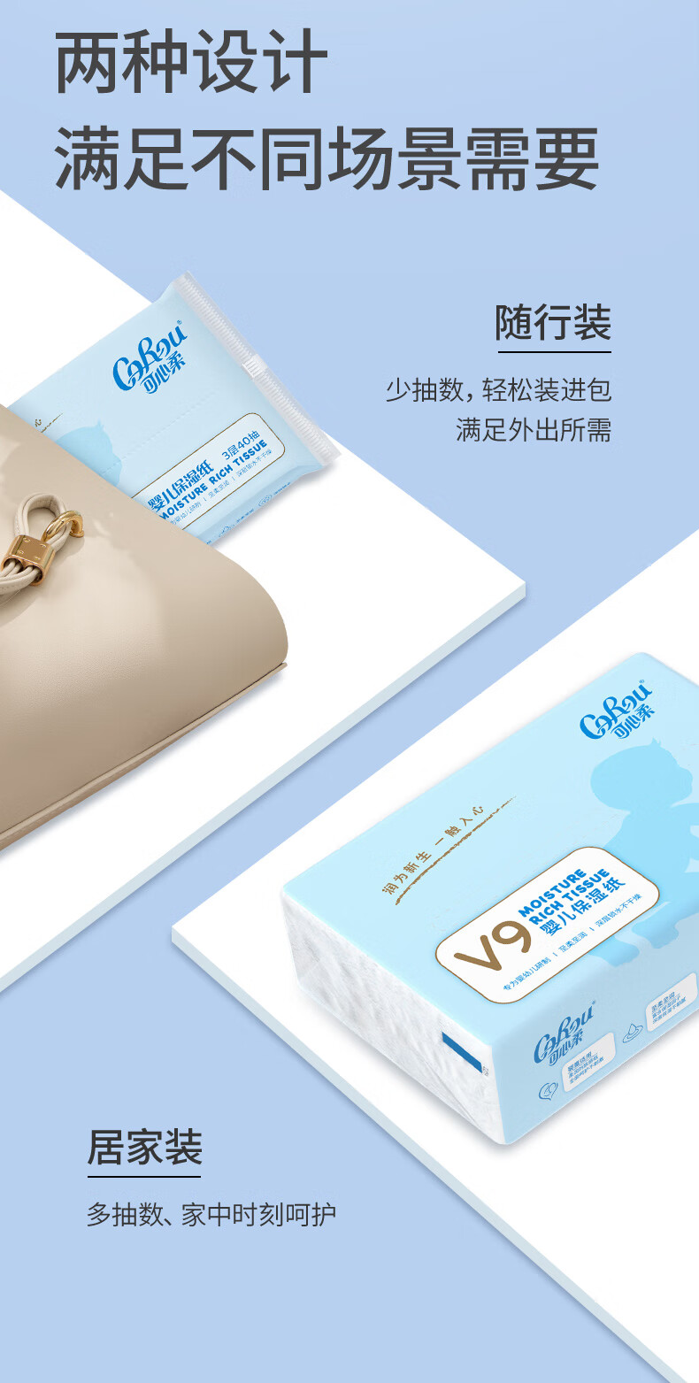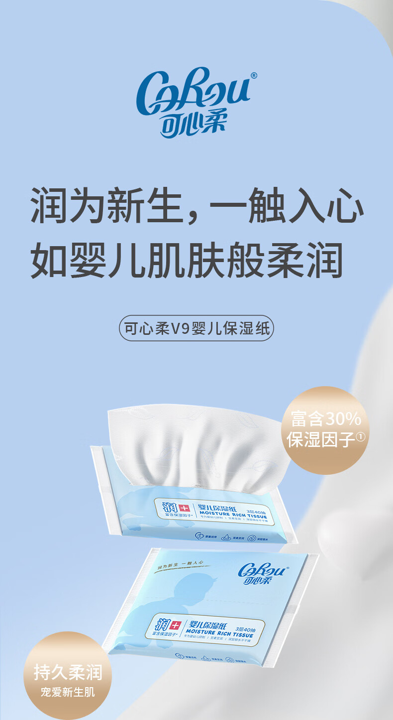 家庭清洁/纸品  > 清洁纸品  > 抽纸  >  可心柔 /V9 COROU  >  可心柔 (V9 COROU)抽纸 保湿纸巾 云柔巾 3层40抽*10包S码 便携装 乳霜纸抽纸 抽纸/箱