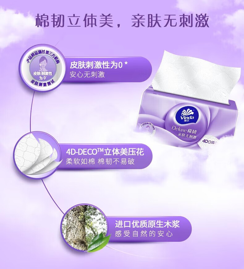 家庭清洁/纸品  > 清洁纸品  > 抽纸  >  维达/Vinda  >  维达V2833 100抽棉韧抽取式纸面巾8包一提 V2833 100抽/提