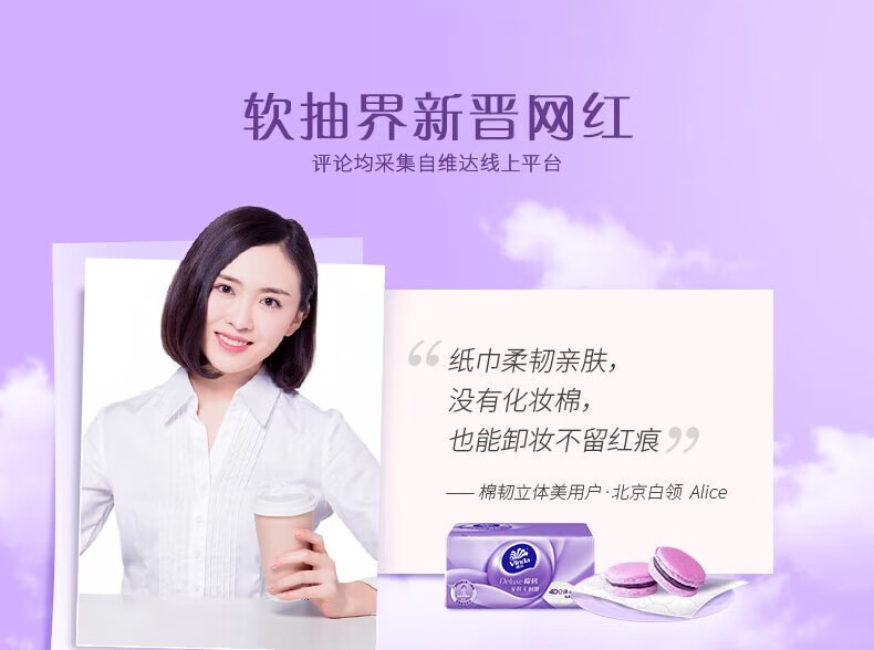 商品名称: 维达V2833 100抽棉韧抽取式纸面巾8包一提 V2833 100抽/提