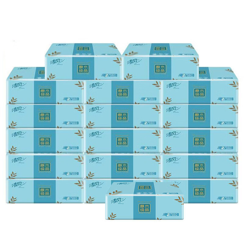 清风抽纸 原木2层200抽*20包S码 软抽 面巾纸BR1AA整箱(包邮) BR1AA/箱