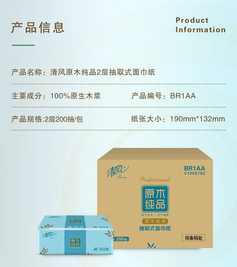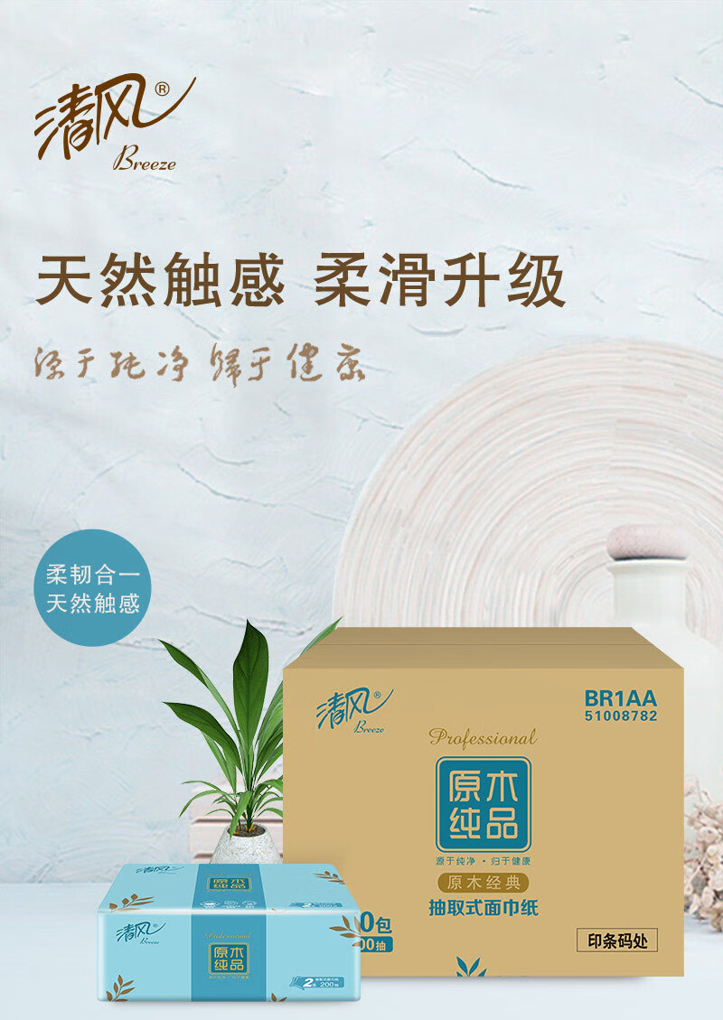 商品名称: 清风抽纸 原木2层200抽*20包S码 软抽 面巾纸BR1AA整箱(包邮) BR1AA/箱