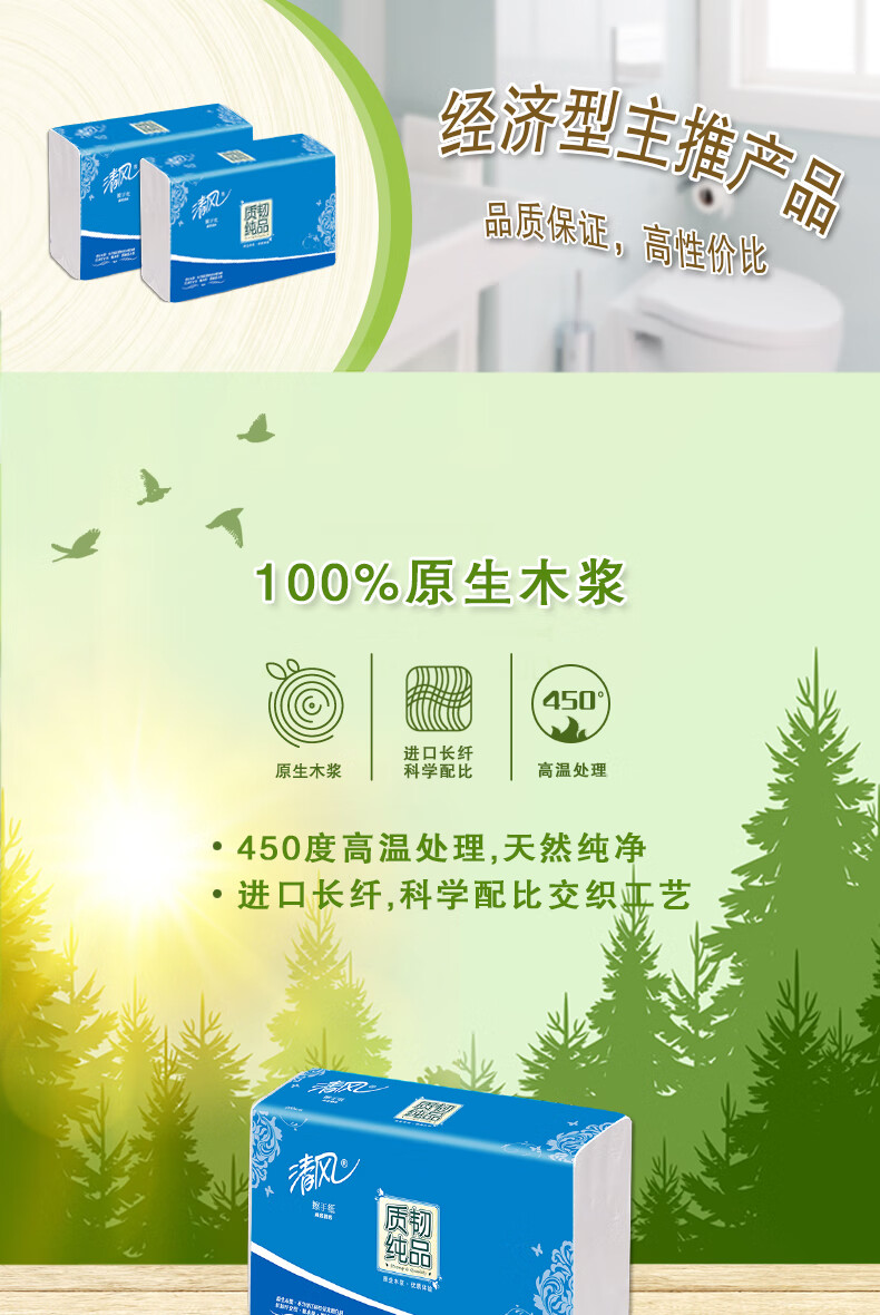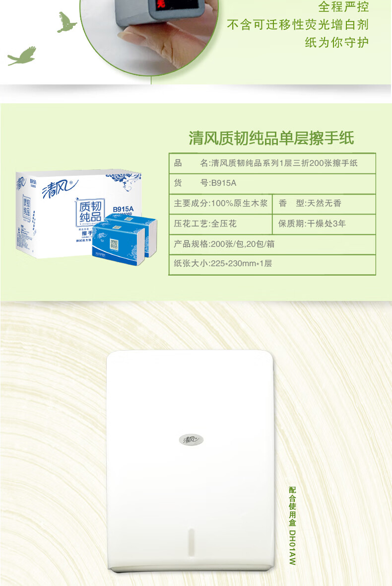 家庭清洁/纸品  > 清洁纸品  > 抽纸  >  清风  >  清风三折压花擦手纸200张*20包 商用酒店办公纸巾整箱批发B915A B915A/箱