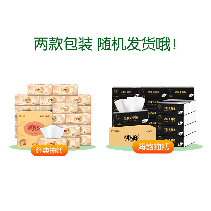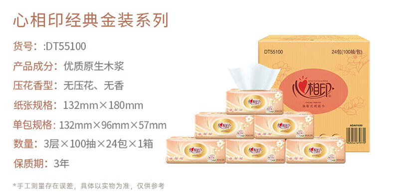 家庭清洁/纸品  > 清洁纸品  > 抽纸  >  心相印  >  心相印 金装经典系列100抽3层塑装纸面巾8包*3提 整箱销售 DT55100 DT55100/箱