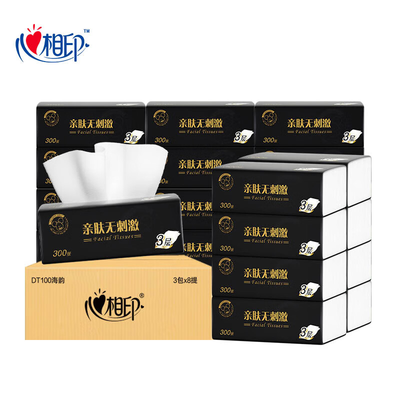 心相印 金装经典系列100抽3层塑装纸面巾8包*3提 整箱销售 DT55100 DT55100/箱